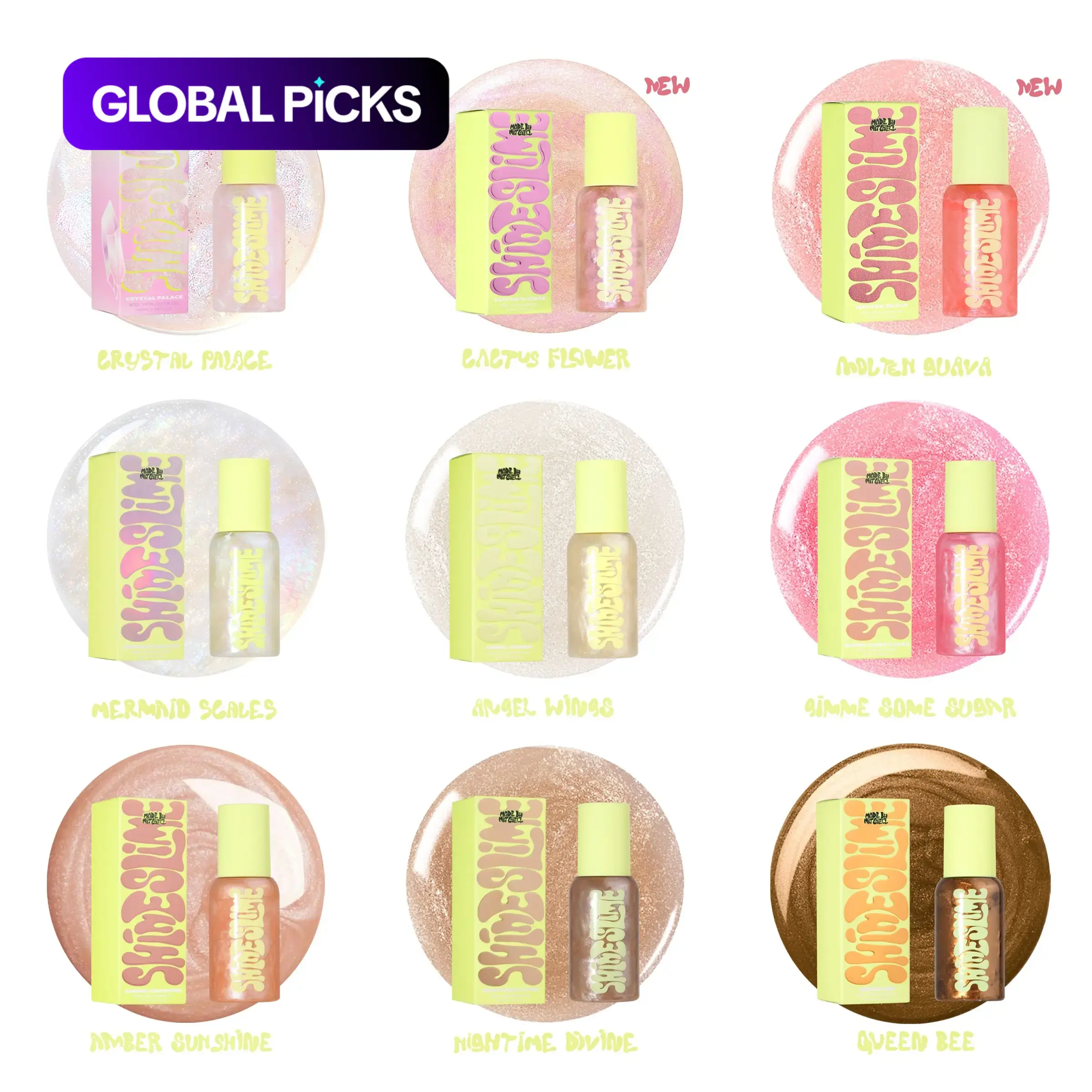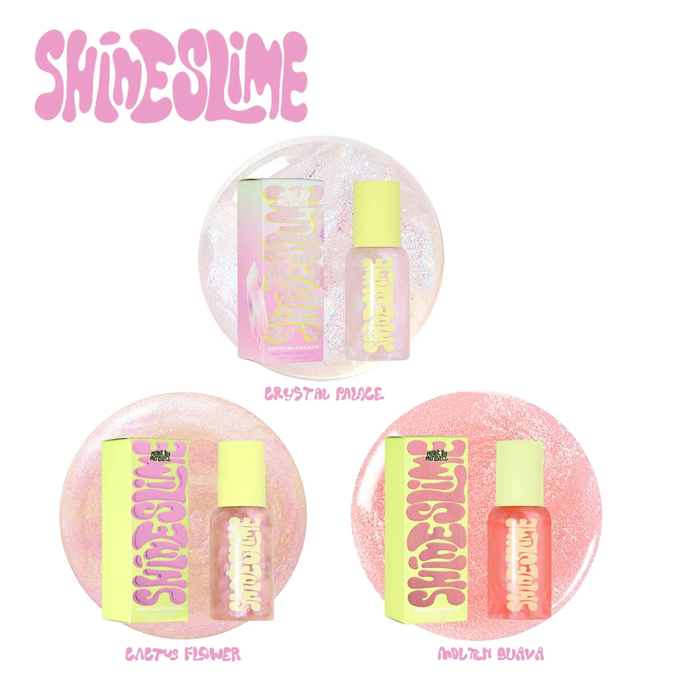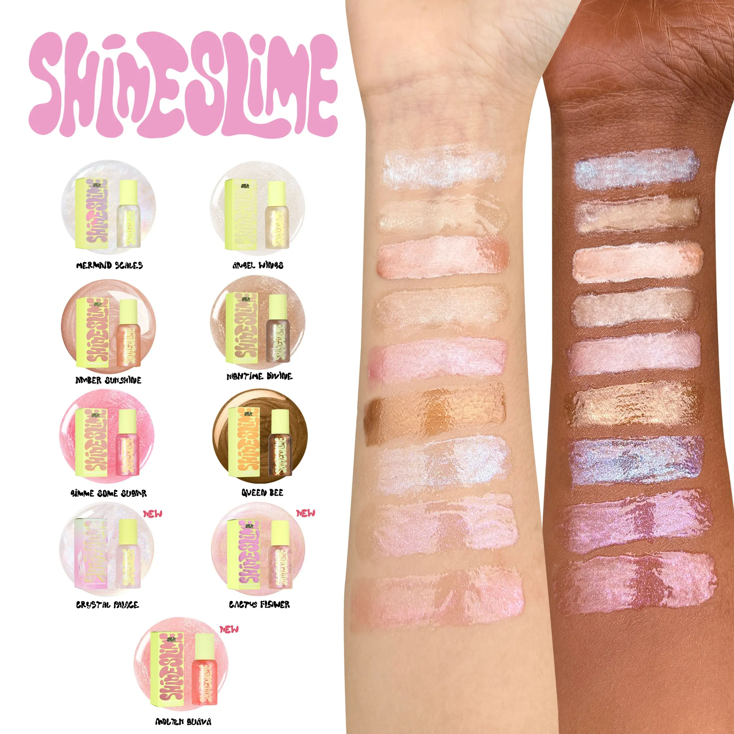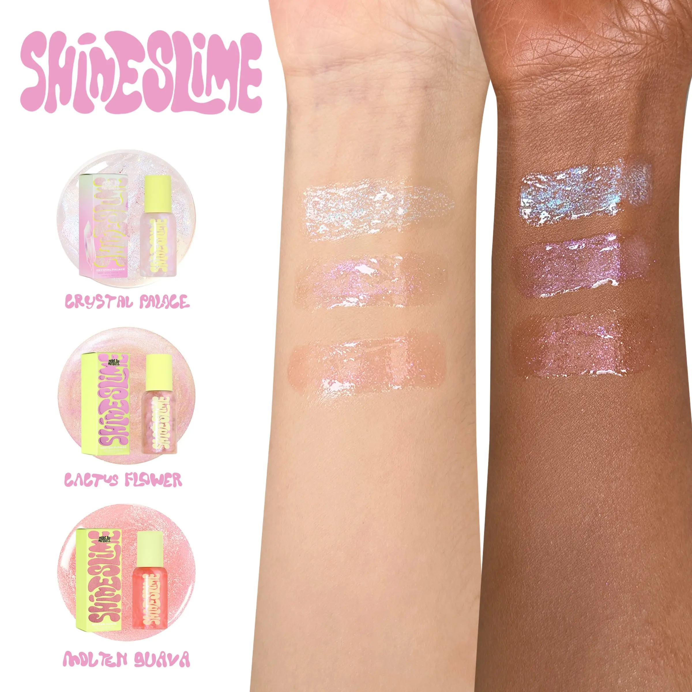 Introducing Shine Slime Body Glow, the ultimate enhancer for luminous skin. Our luxurious body glow comes in eight mesmerising shades, each designed to highlight your natural beauty and give your skin a stunning, radiant finish. Plus, enjoy the added delight of a refreshing fruity scent with every application.