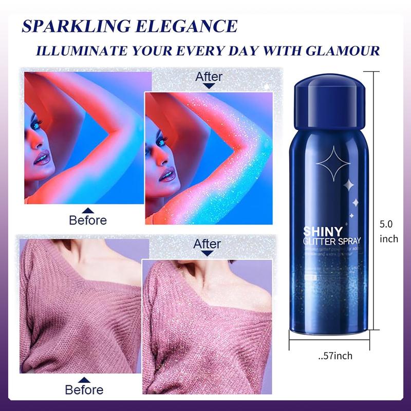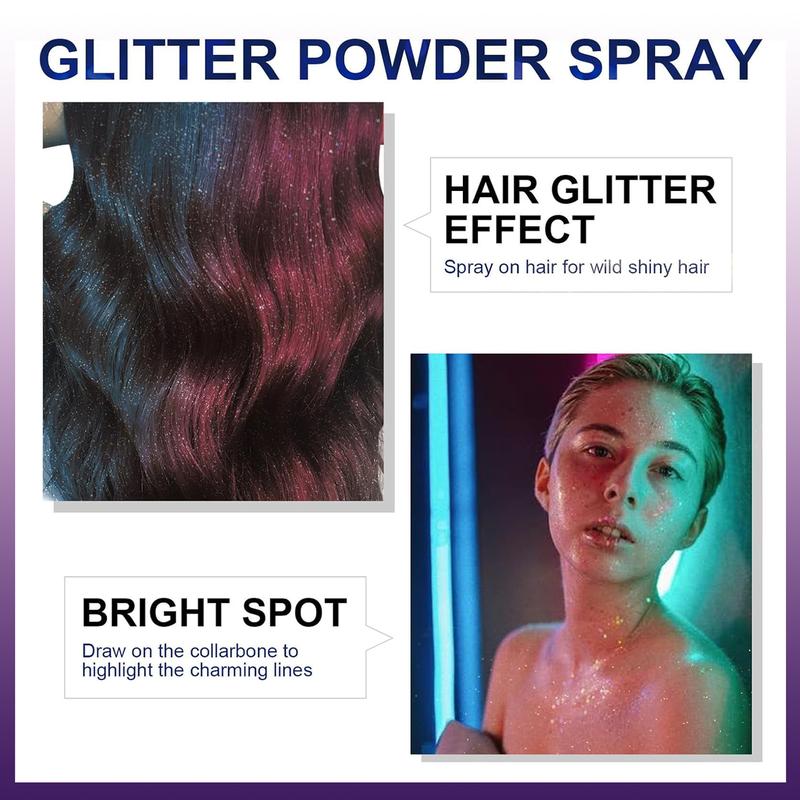 This versatile glitter spray can be applied to hair or body for a dazzling effect. It's perfect for parties or daily glamour. Make you stand out under the lights of a nightclub or any event. Shine brightly and captivate attention effortlessly.