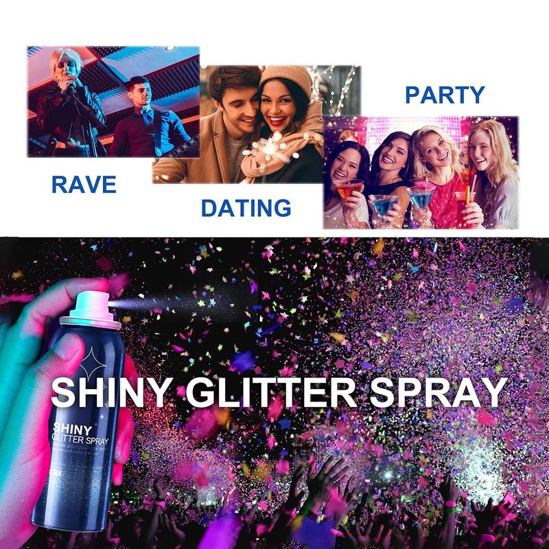 Ideal for birthday parties, masquerades, nightclubs, holidays, stage makeup, proms, weddings, performances, bars, Halloween, Christmas, and more. Add a glamorous touch to any occasion with this versatile glitter spray.