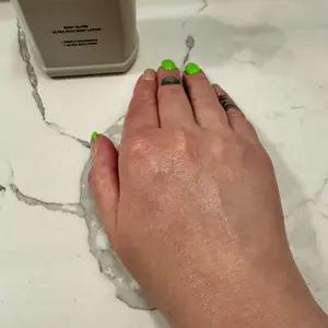 2.5/5 stars. I really wanted to like this. I was searching through reviews to see a comment that resonated with me and finally found one (hey Bree!) - there was so much friction when applying this lotion (similar to sun screen). I feel like I had to apply a lot to feel moisturized. I’m normally a Sympathy for the Skin (Lush) user - so I applied them side by side (gloss on left, sympathy on right). The gloss effect was barely noticeable in comparison.