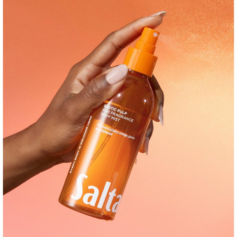 Love Saltair's Exotic Pulp Body Mist! Its fruity-floral blend is a vacation in a bottle. Refreshing and light, it's the perfect pick-me-up. Get ready for a getaway with every spray!