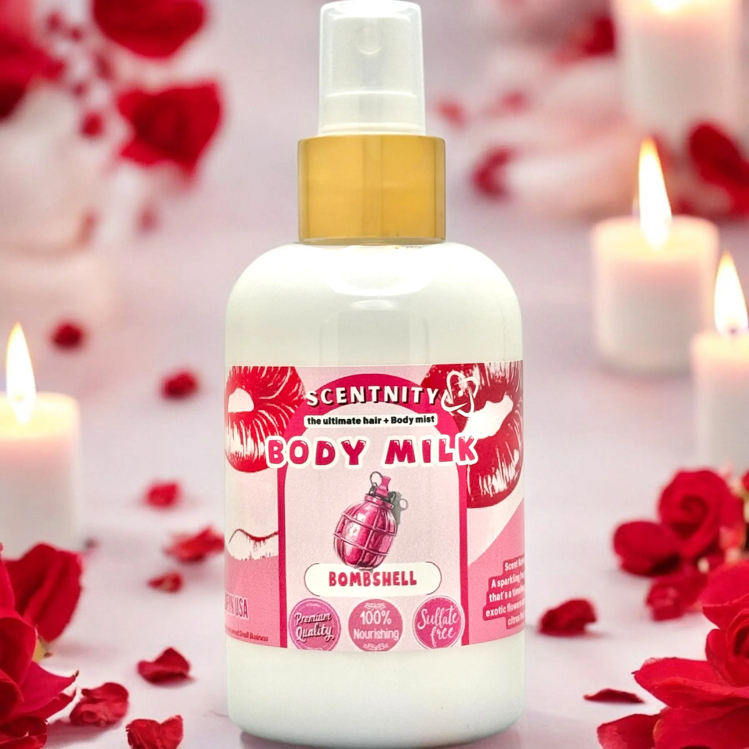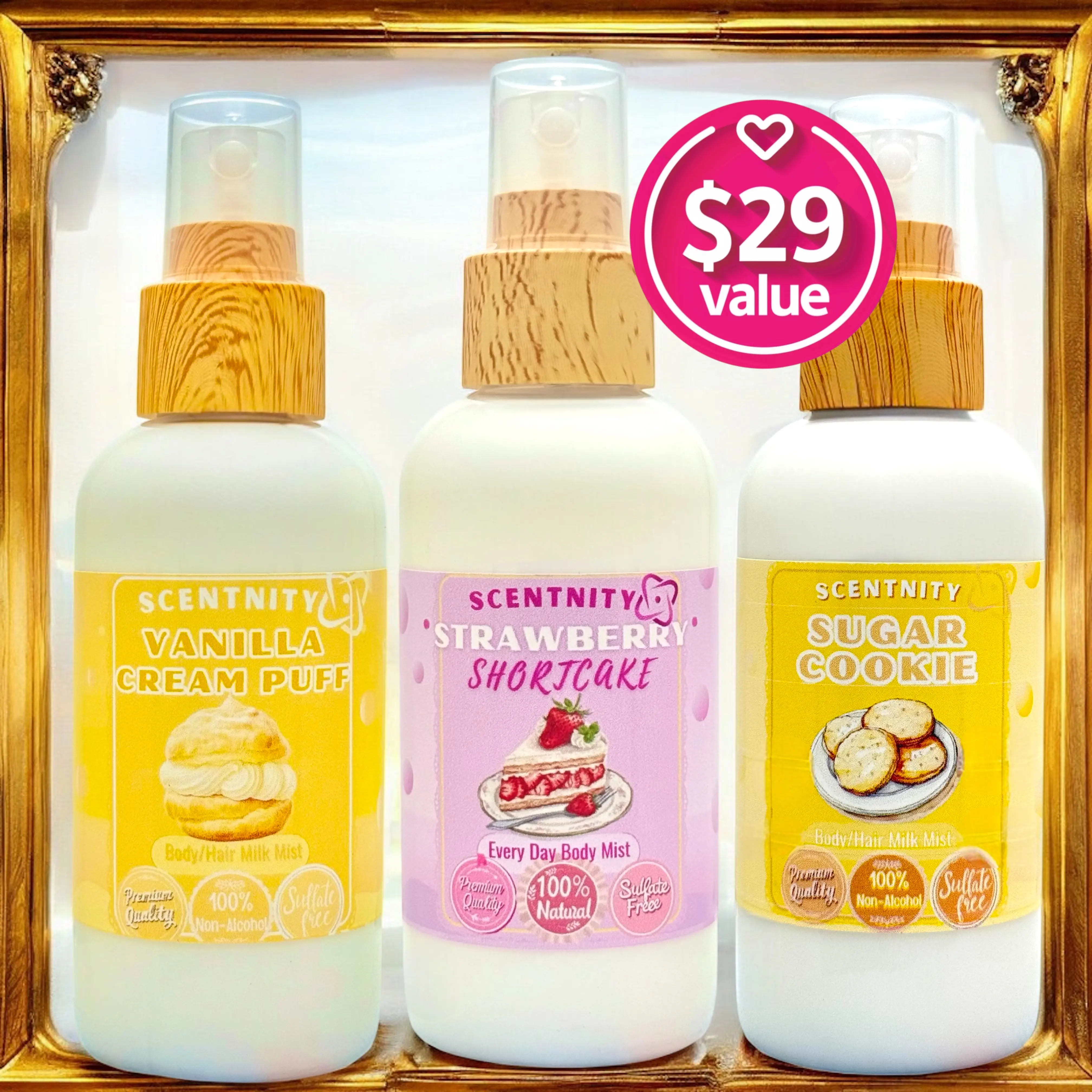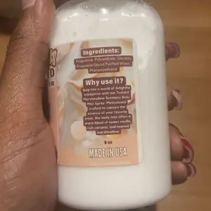 🍰Mist in a sweeping motion 3-4 pumps at a time. At least 6 inches away for hair/clothes.