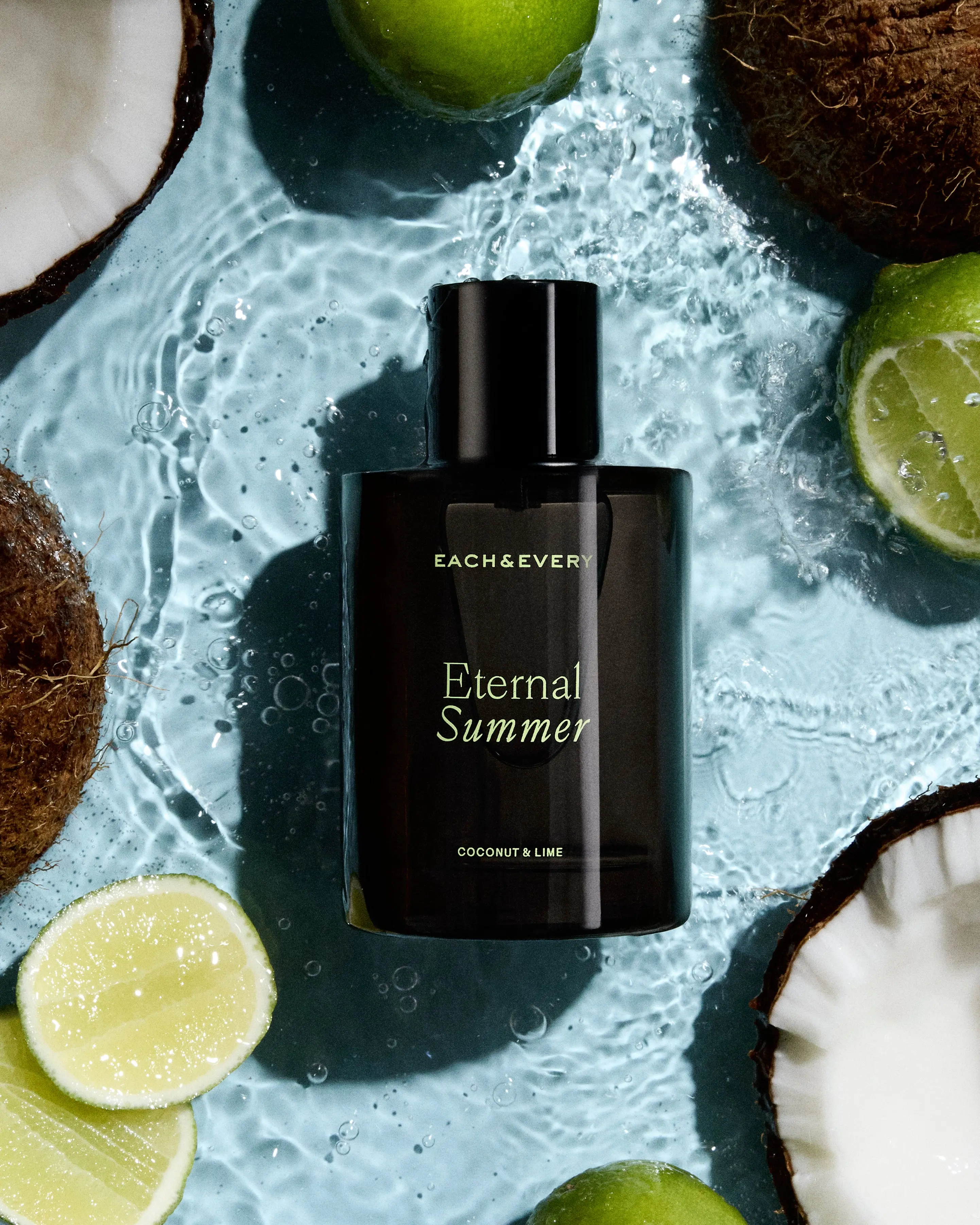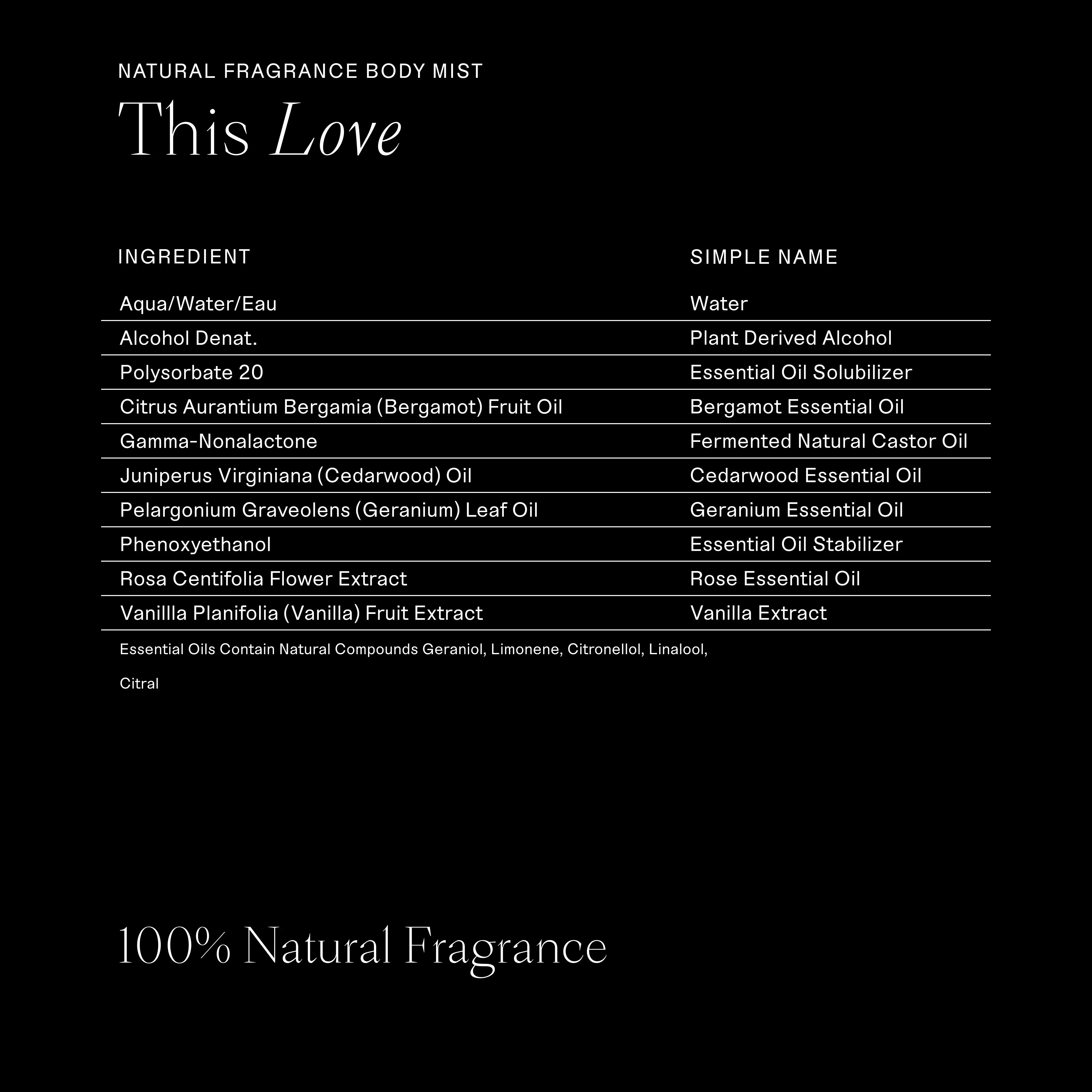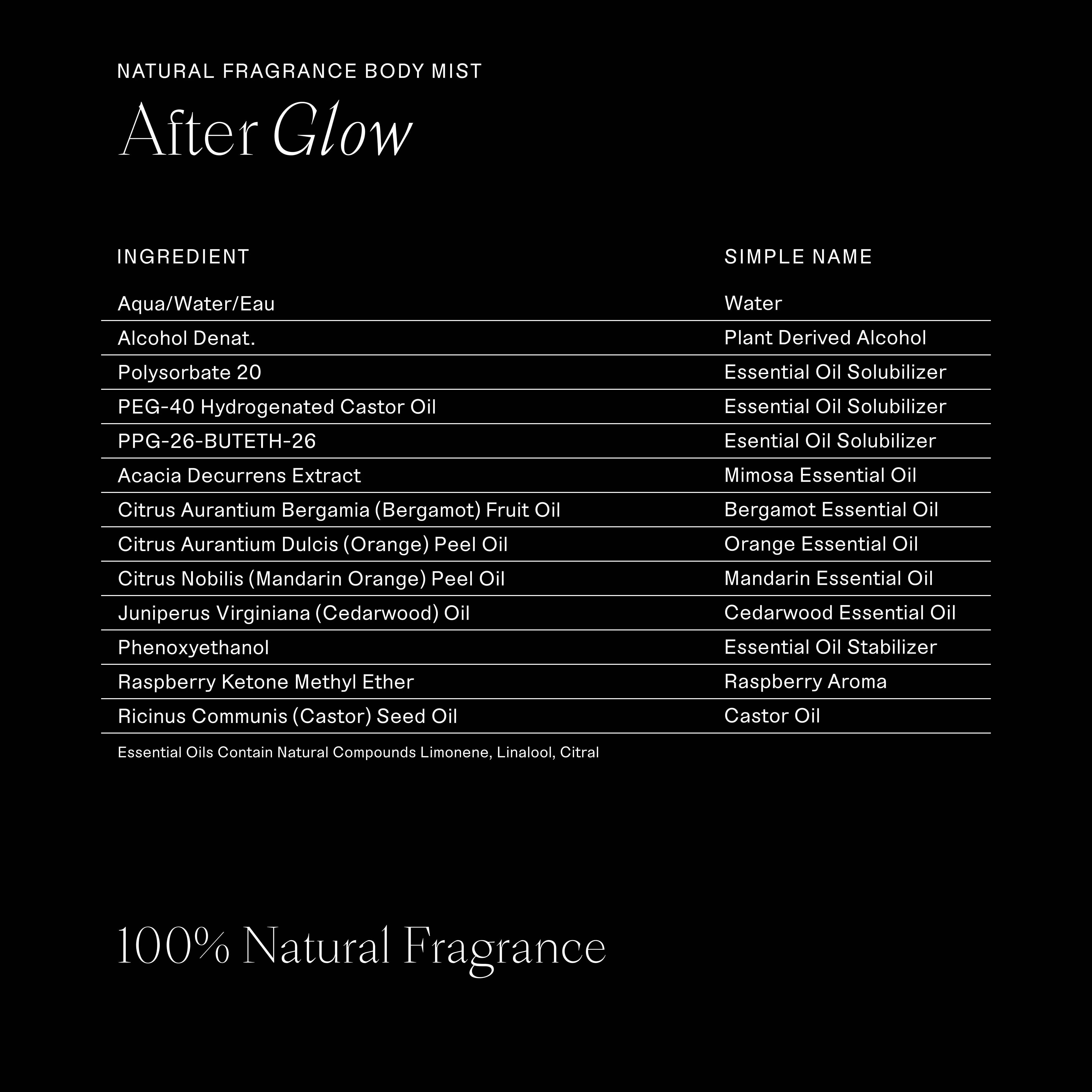 Fine fragrance ingredients in a luxurious glass bottle, formulated as a mist for daily luxury.