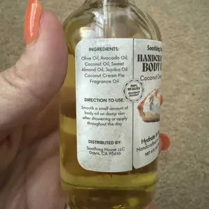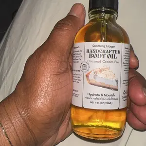 Overall a sweet fragrant cake smell, reminds me of a bath and body works candle thats too strong and smells like pumpkin and creampie. I do smell a little coconut but the scent is too strong to catch it at first. The oil is really soothing and makes your skin soft and shiny. I rate 7/10