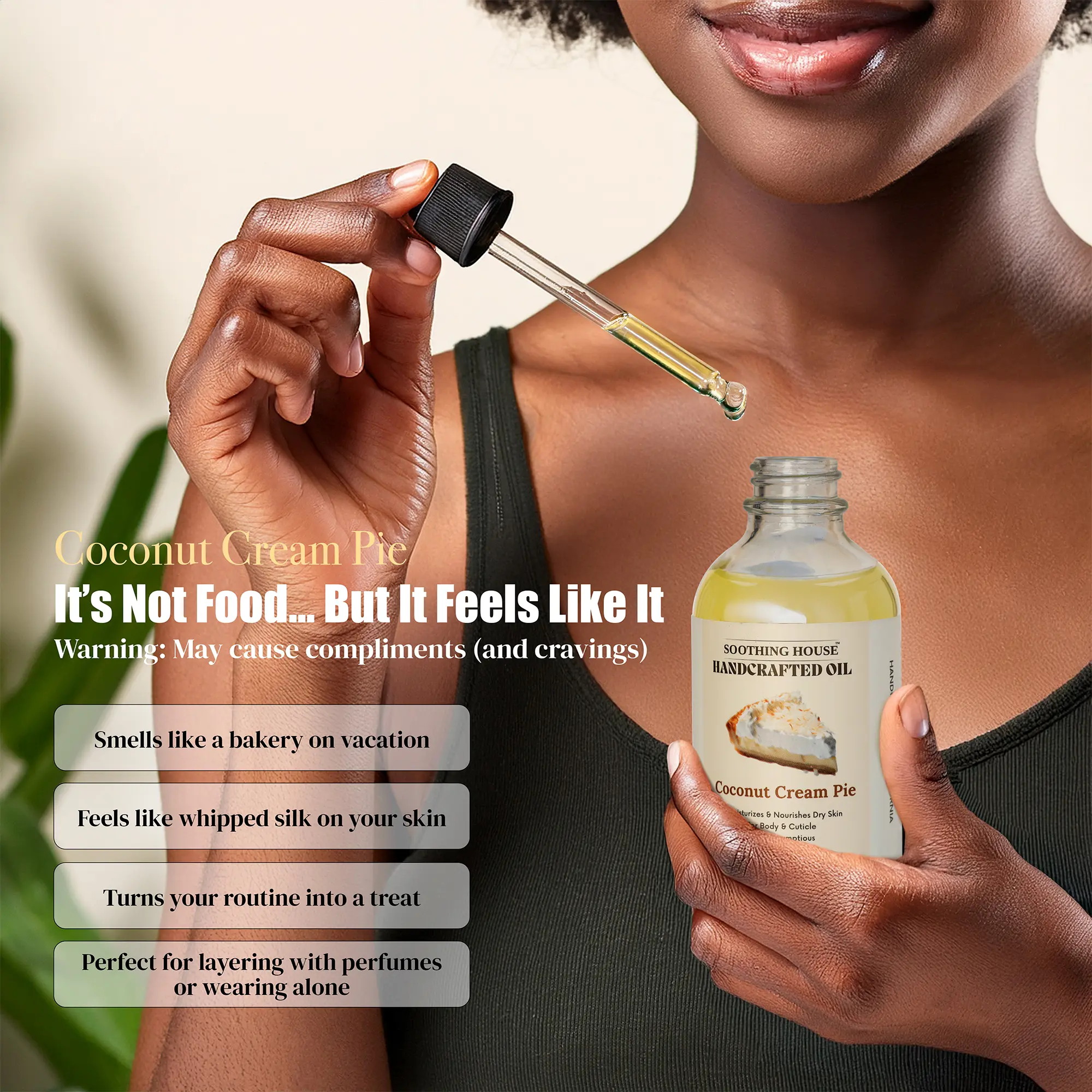 Oh, it’s so excited to get this Oil. Everybody was talking about the coconut cream pie. It’s OK it’s not strong enough for me, but it’s OK. The quality of the oil still feels good on my skin, but I can barely smell the coconut cream.