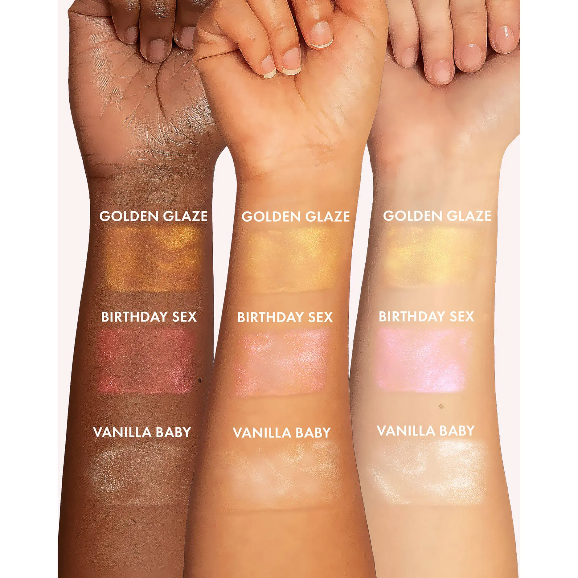 It smells so so yummy and when you take it out of the box you can smell it it makes me feel like a vanilla cupcake with vanilla frosting 😩 I am in loveeeee super moisturizing lasts all day and it’s not that glittery which is a plus for me it smells so good and it’s not too obnoxiously strong it’s absorbs super fast so your not left feeling oily for a long time/ doesn’t make me feel oily 1000/10 product sooo worth it the bottle is so lux and bougie but it is glass so be careful if you have kids
