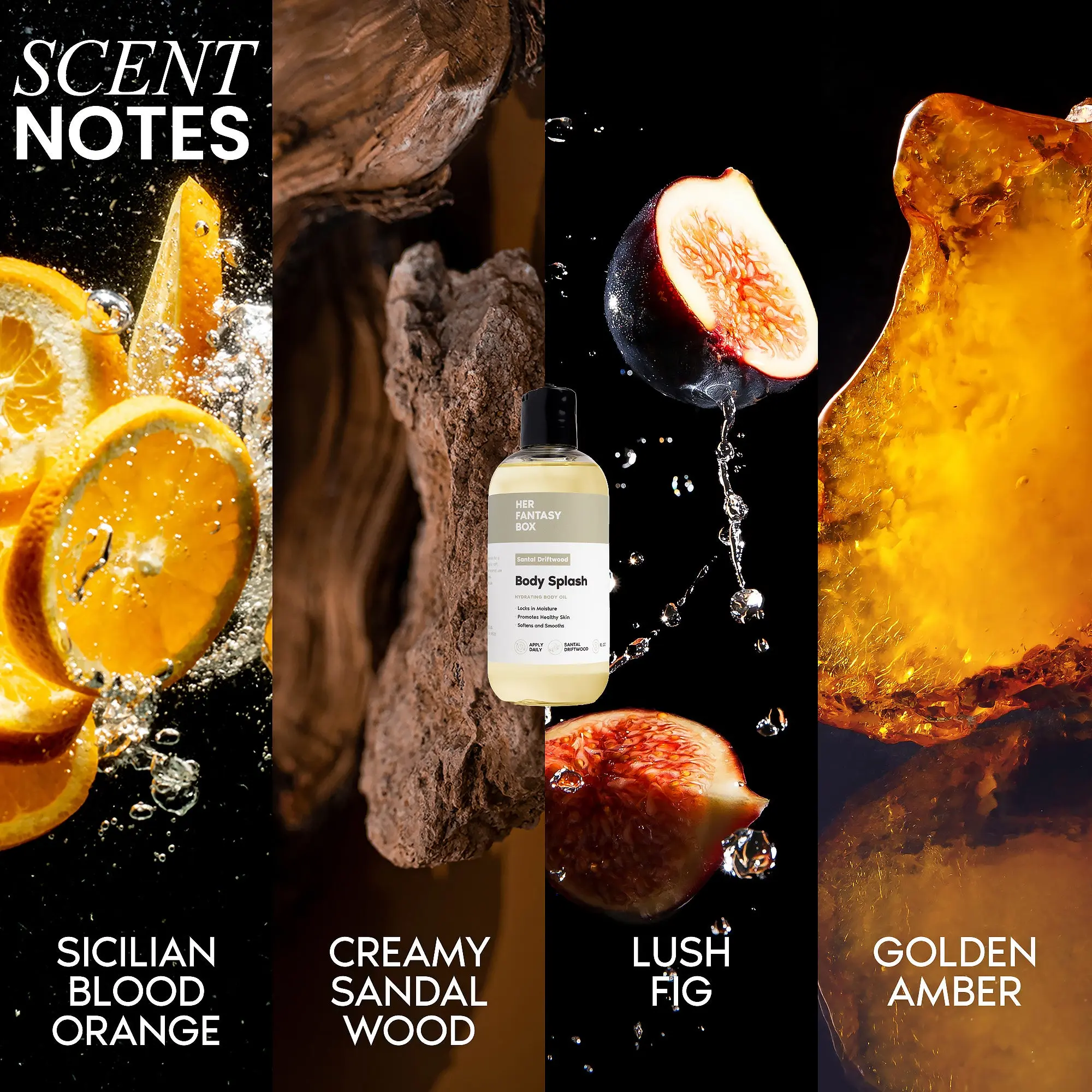 A creamy sandalwood and amber body oil with fig, birch, and Sicilian blood orange notes. Smells like a high-end fragrance on warm skin.
