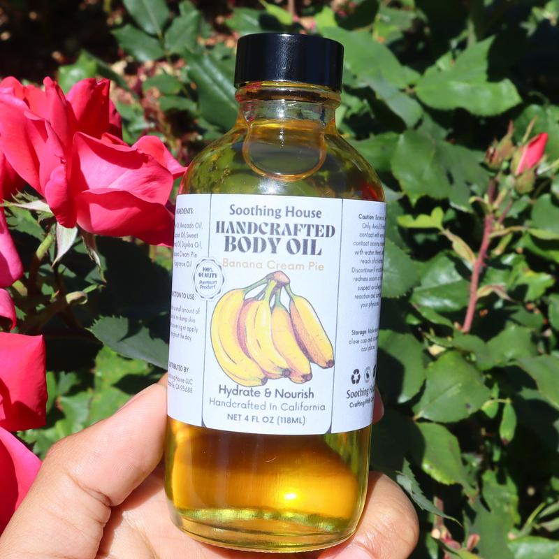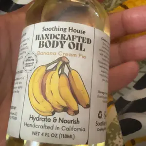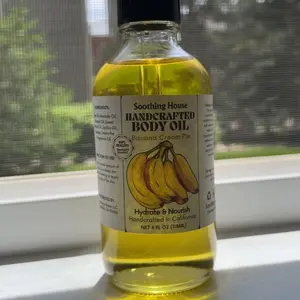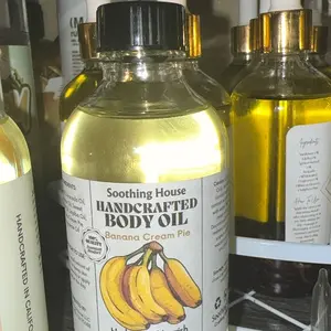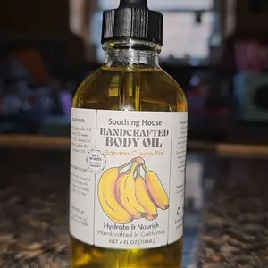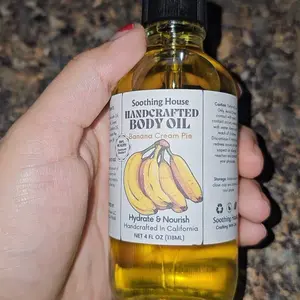 Get ready for glistening, silky-smooth skin with Soothing House Banana Cream Pie Body Oil Skin Moisturizer. Whether you have dry, dull or normal skin, this liquid moisturizer crafted with jojoba oil, coconut oil, avocado oil and sweet almond oil provides a deep hydration that lasts all day long.