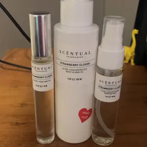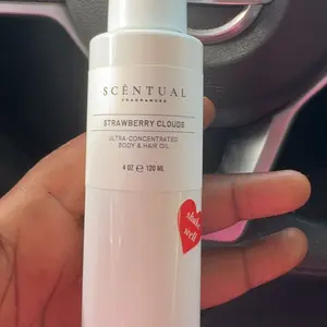 Okay this is smells so good. It’s my new favorite body oil. It smells like fluffy marshmallows with a hint of sweet strawberries. I love that it’s for body and hair. Makes my skin soft and I smell good for hours when I layer it with the perfume. Definitely recommend, I will be purchasing another.