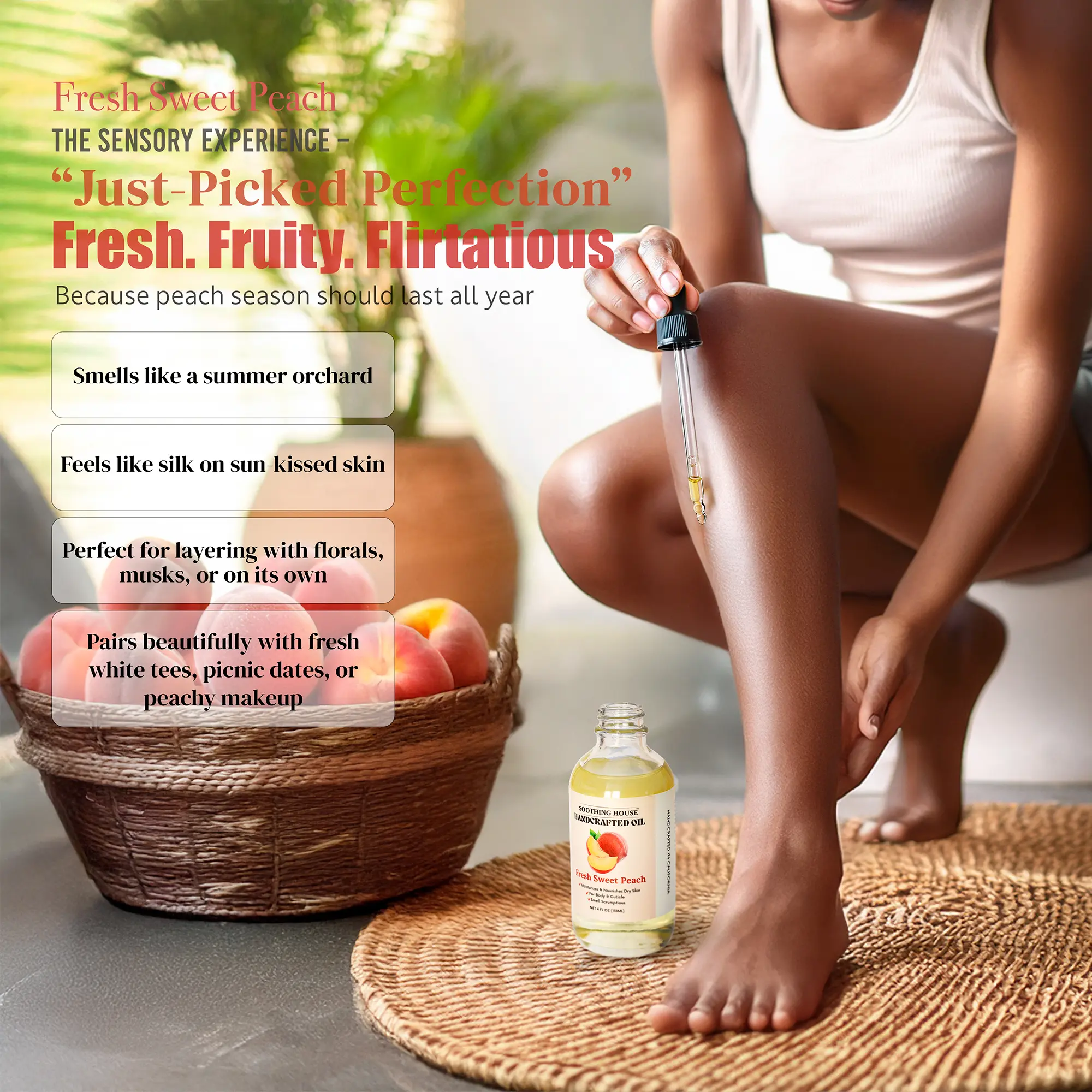 Whether you're a peach scent lover or just want your skin to smell like a fruity dream, Juicy Peach Body Oil is your new signature scent.