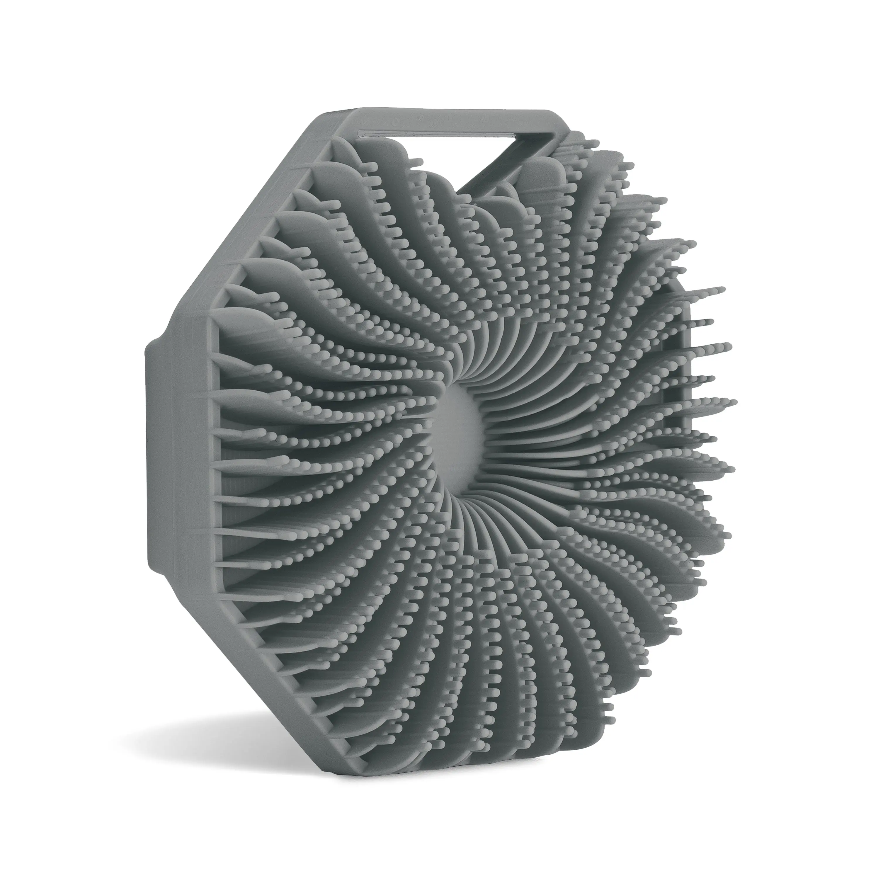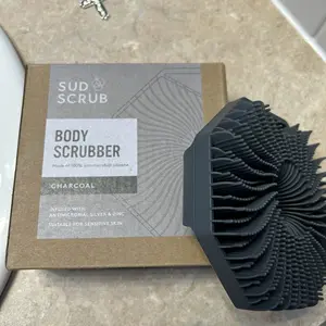 The Sud Scrub body scrubber is made with 100% antimicrobial silicone that's infused with silver and zinc to resist odor-causing bacteria, mold, and mildew from growing on its surface.