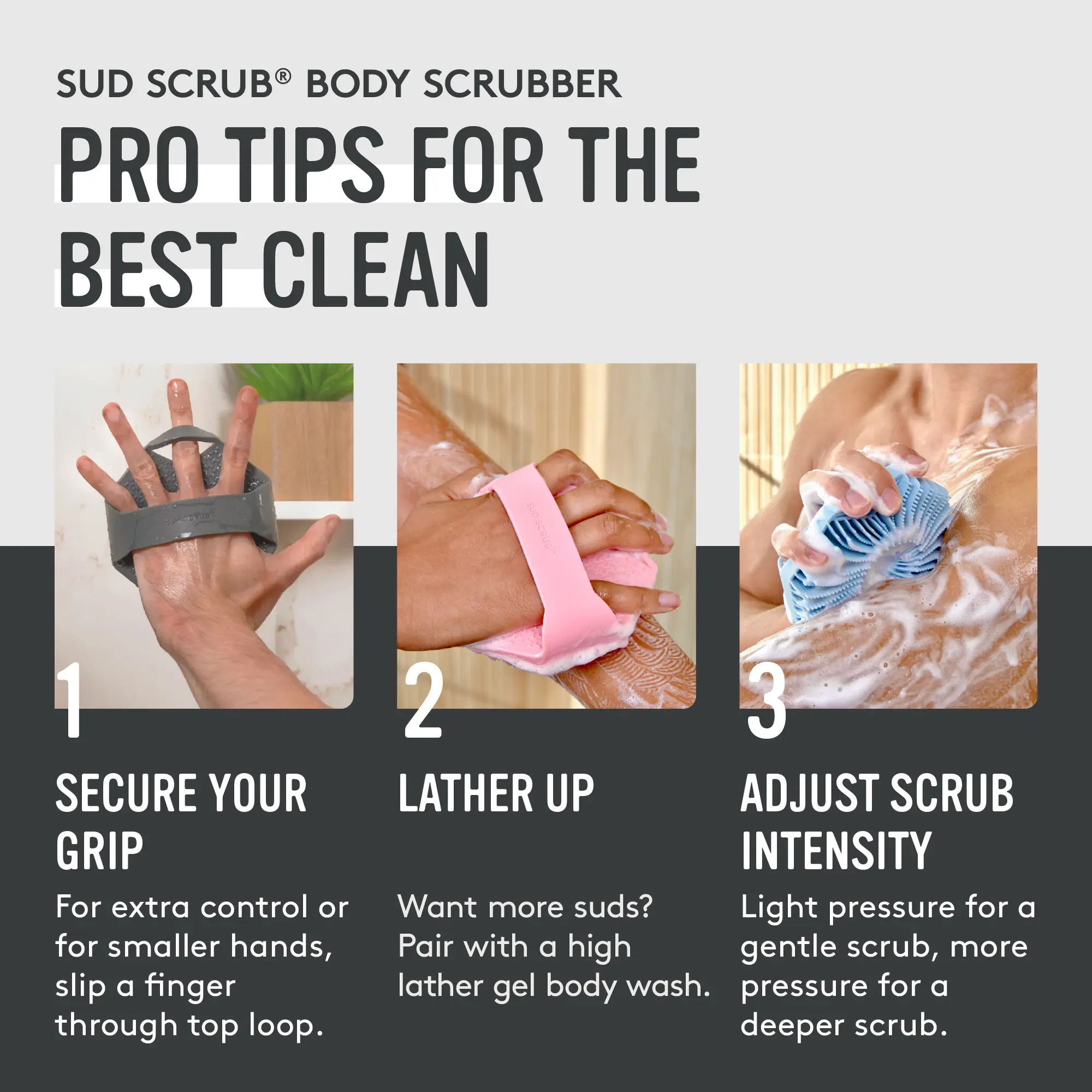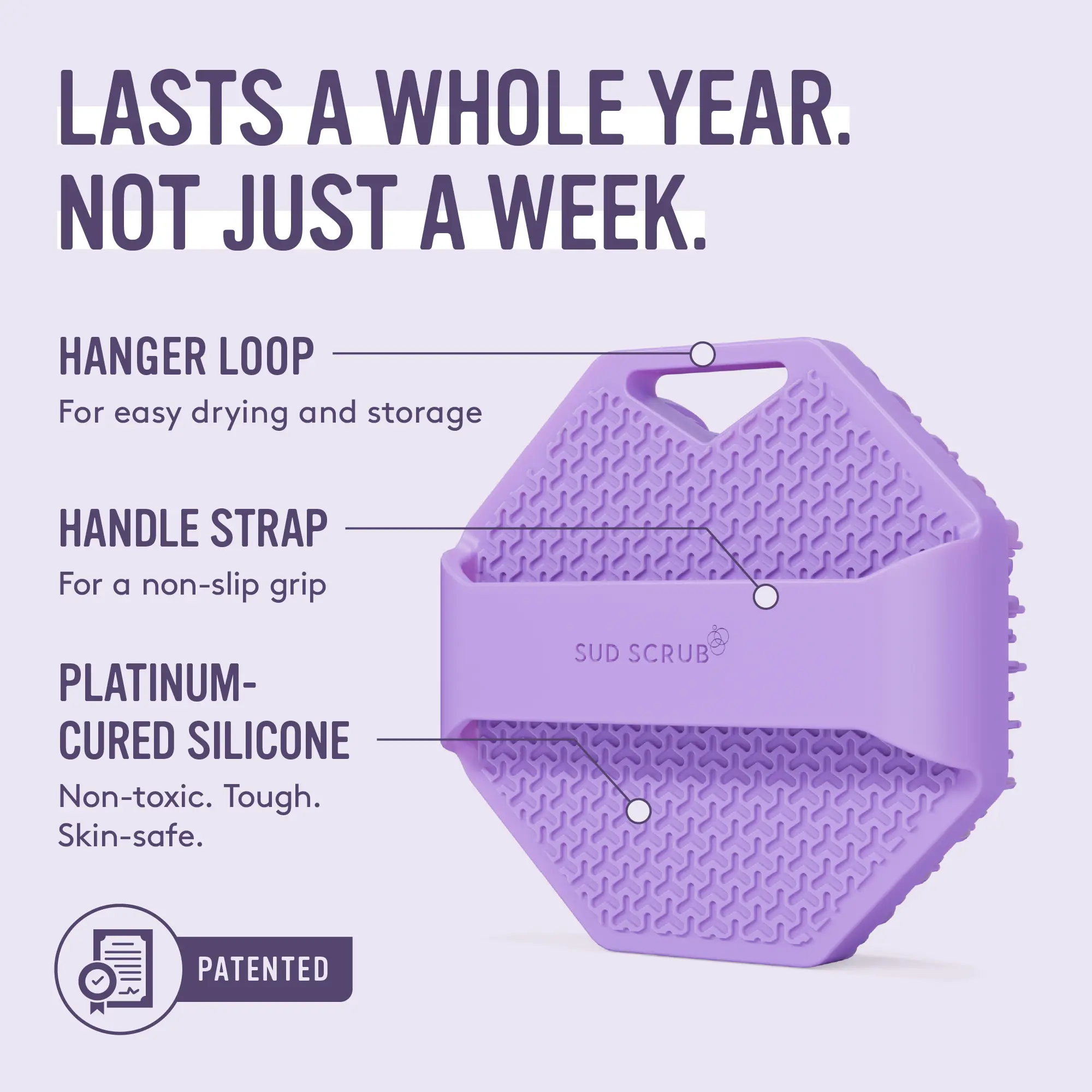 ·BUY IT ONCE, USE IT ALL YEAR - Loofahs fall apart, washcloths get moldy, and cheap brushes? They crack way too easily. But with Sud Scrub's platinum-cured silicone, you get over 12 months of reliable daily use. One purchase and you’re done.
