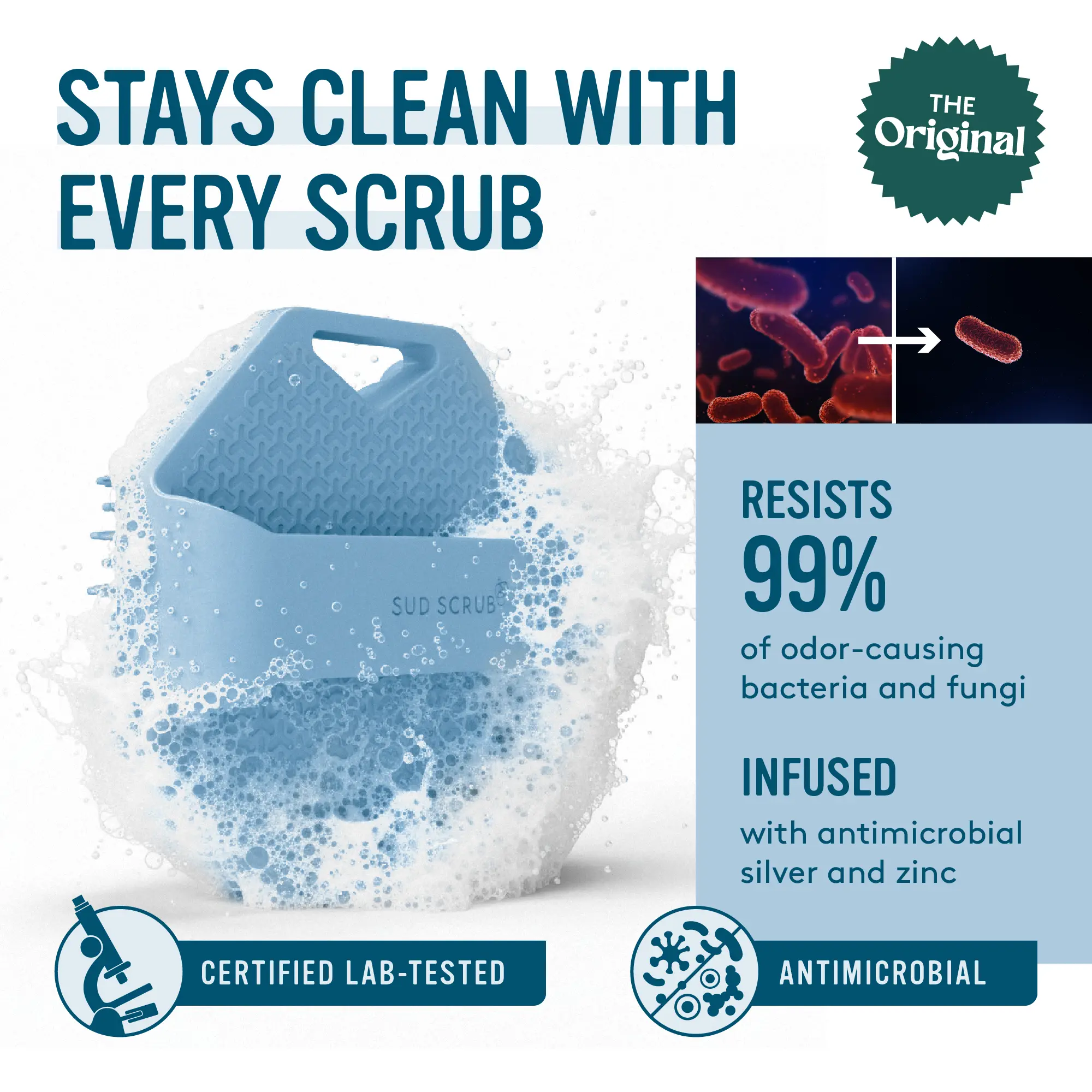 ·RESISTS 99% OF BACTERIA - This silicone shower brush stays clean with antimicrobial protection from silver and zinc—unlike cheap scrubbers that get gross fast. Sud Scrub is the only brush designed to keep things fresh and free of odor!