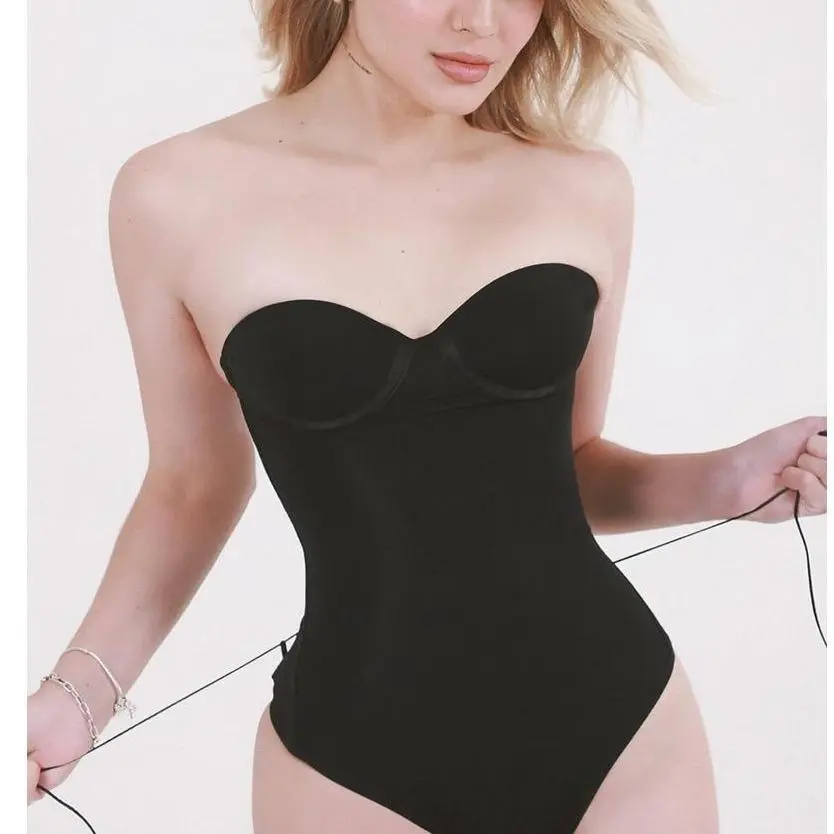 ADJUSTABLE FIT: The strapless shapewear with built-in bra has an adjustable rope strap on the back, so you can adjust it to fit your body perfectly. It's easy to adjust our corset bodysuit: loosen the back laces and put it on. After that, all that's left is to tighten the laces on the back and tie them off. The tightness can be adjusted to your personal preference.