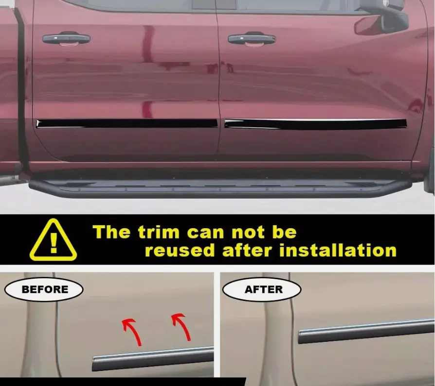 5. CROSSDESIGN Fit For 14-18 Silverado/Sierra Crew Cab Body Side Molding Trim Set 4PCS 1/18" US