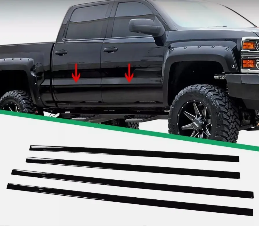 CROSSDESIGN Fit For 14-18 Silverado/Sierra Crew Cab Body Side Molding Trim Set 4PCS 1/18" US