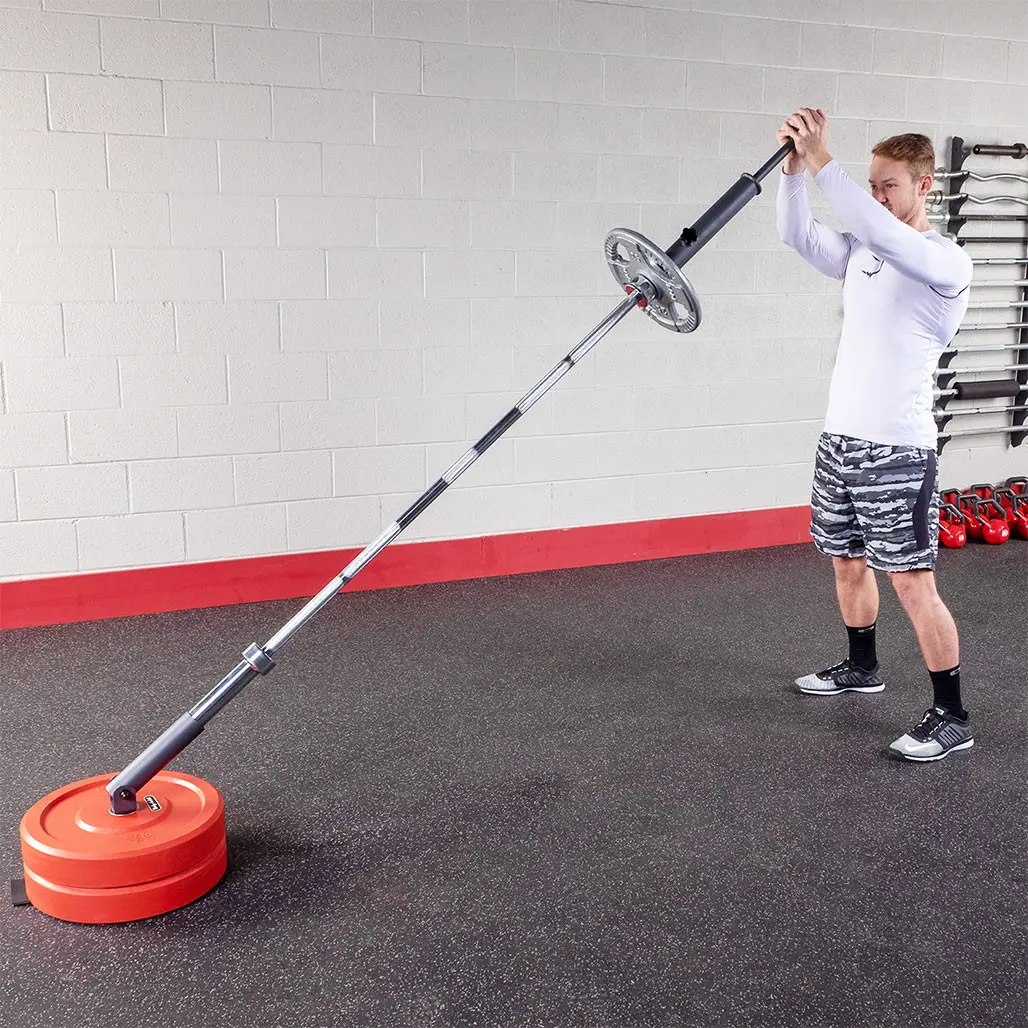 Landmine exercises allow users to train in multiple planes while targeting a number of muscle groups. Thanks to a multitude of rotational exercise possibilities, landmines improve strength and power while working the stabilizing muscles of the core, hips and shoulders. Trainers and strength coaches alike love landmines because they’re safe, easy-to-use and most importantly, effective. Landmine exercises are easy-to-learn and don’t carry the same safety risks involved with traditional lifting movements. Landmines are ideal for large groups without fear of injury due to improper form or lack of supervision.  Note: Weight plates not included.  7” base post easily slides into into stacked 45lb Plates - 2” diameter sleeve 360 degree pivot allows comfortable rotational exercises Portable design for easy transport 7 gauge steel - suitable for Gyms Pivot sleeve length 10” Works with almost any Olympic bar 320lb. Capacity Dimensions: 10" L x 10" W x 2.5" H