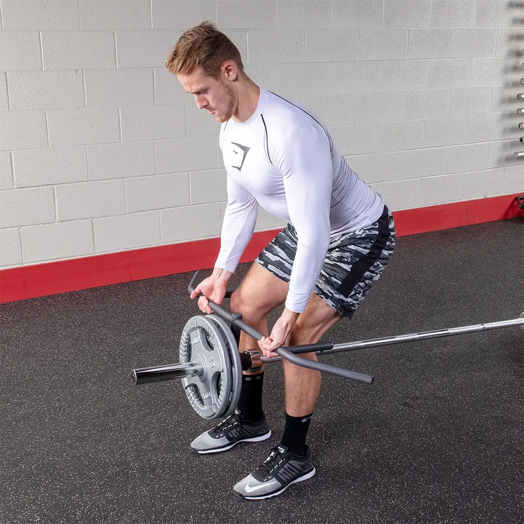 Landmine exercises allow users to train in multiple planes while targeting a number of muscle groups. Thanks to a multitude of rotational exercise possibilities, landmines improve strength and power while working the stabilizing muscles of the core, hips and shoulders. Trainers and strength coaches alike love landmines because they’re safe, easy-to-use and most importantly, effective.Landmine exercises are easy-to-learn and don’t carry the same safety risks involved with traditional lifting movements. Landmines are ideal for large groups without fear of injury due to improper form or lack of supervision.Three grip positions- Neutral, wide and standard grips to isolate upper body musclesLong handle for full range of motion and maximum contractionSolid steel construction6 ¾” handles for full stretch and peak contractionmedium knurl throughout barWorks with almost any Olympic bar500lb. CapacityDimensions: 44" L x 9" W x 8" HBar Weight: 8 lbs.