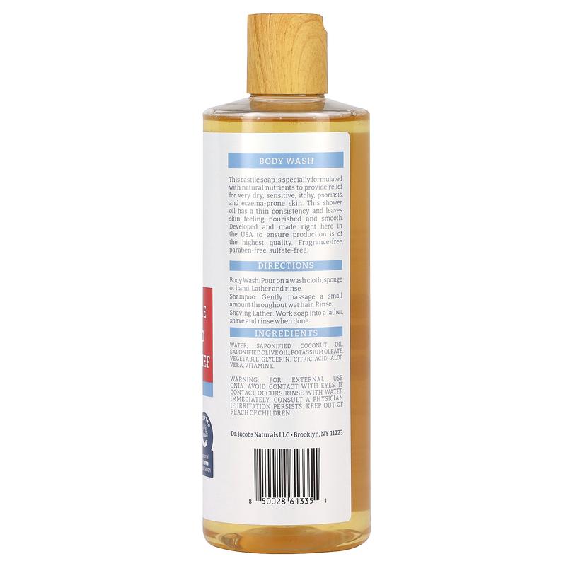 Dr. Jacobs Naturals Pure Castile Eczema and Psoriasis Relief, Body Wash, Fragrance Free, 16 oz (473 ml)