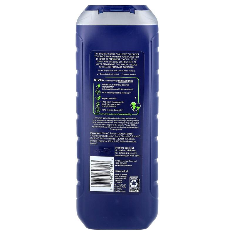 Nivea Men, Energy 3 in 1 Body Wash, Mint & Cedarwood, 16.9 fl oz (500 ml)