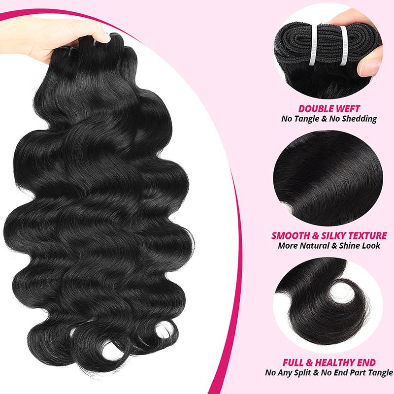 I purchased this hair and I am very satisfied with it. The bundles are full, soft, and the body wave texture is beautiful. The hair has a natural shine, it doesn’t tangle easily, and it holds curls well. After installation, it looked very smooth and bouncy with great volume.