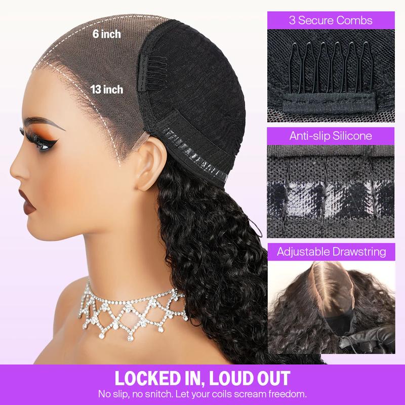 Hair is even comfortable wearing with the hat on I wet the hair a little bit so the curls would loosen gives nice little wave I love this way it's so comfortable to wear im able to wear all kinds of MegaLook look wigs it's so much more comfortable than I've had with other wigs from other companies I love the drawstring addition and the clips make it very secure without feeling like it's poking me I definitely recommend purchasing you could style it so many different ways as well