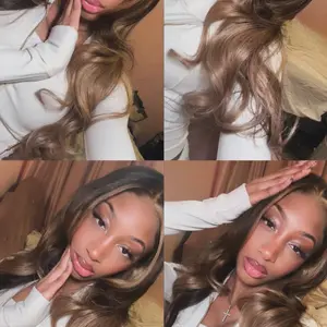 Buy 1 613# Body Wave Wig Get 1 Pink Bag 1 HD Wig Cap 1 Brown Wig Cap and 1 Eyelashes