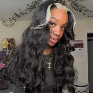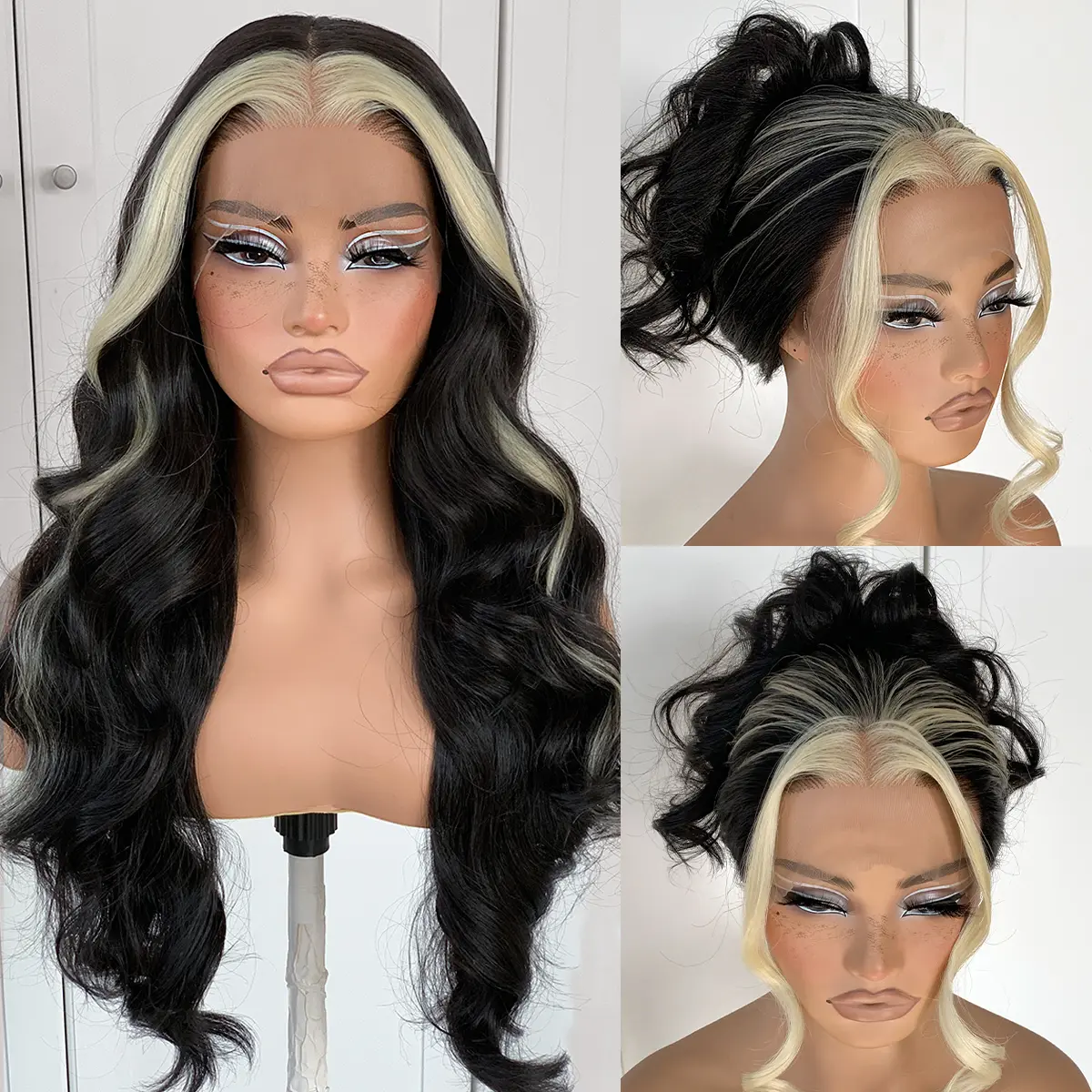RW Blonde Skunk Stripe, 26inch body wave lace front wig