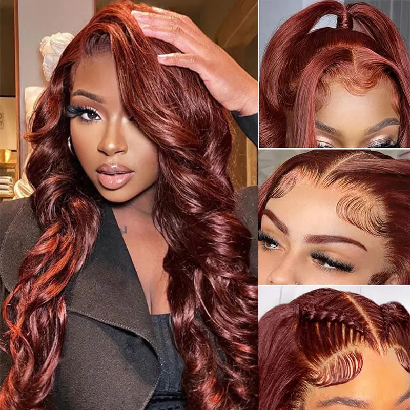 ·Hair Material: Sunber Reddish Brown Body Wave 7x5 Lace Front Wigs Pre-Plucked With Babyhair