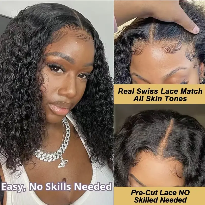 5. Short Bob Glueless Wigs 6x4 Ready To Wear Deep Wave Curly Wigs Human Hair Wet and Wave 6x4 HD Lace Closure Wig For Women Pre Plucked 180% SpringStatements