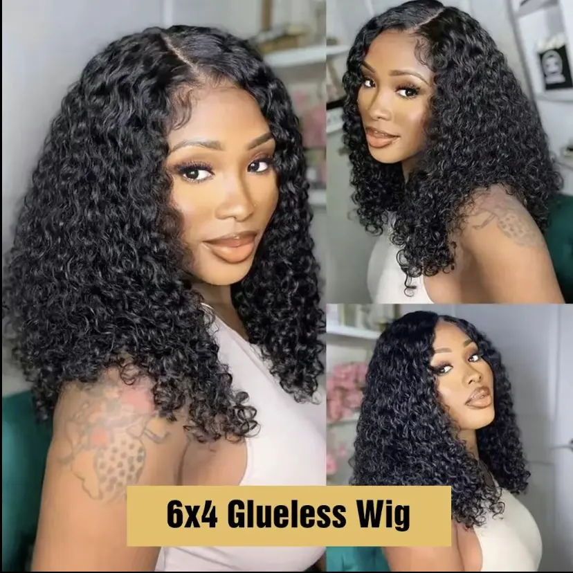 Short Bob Glueless Wigs 6x4 Ready To Wear Deep Wave Curly Wigs Human Hair Wet and Wave 6x4 HD Lace Closure Wig For Women Pre Plucked 180% SpringStatements