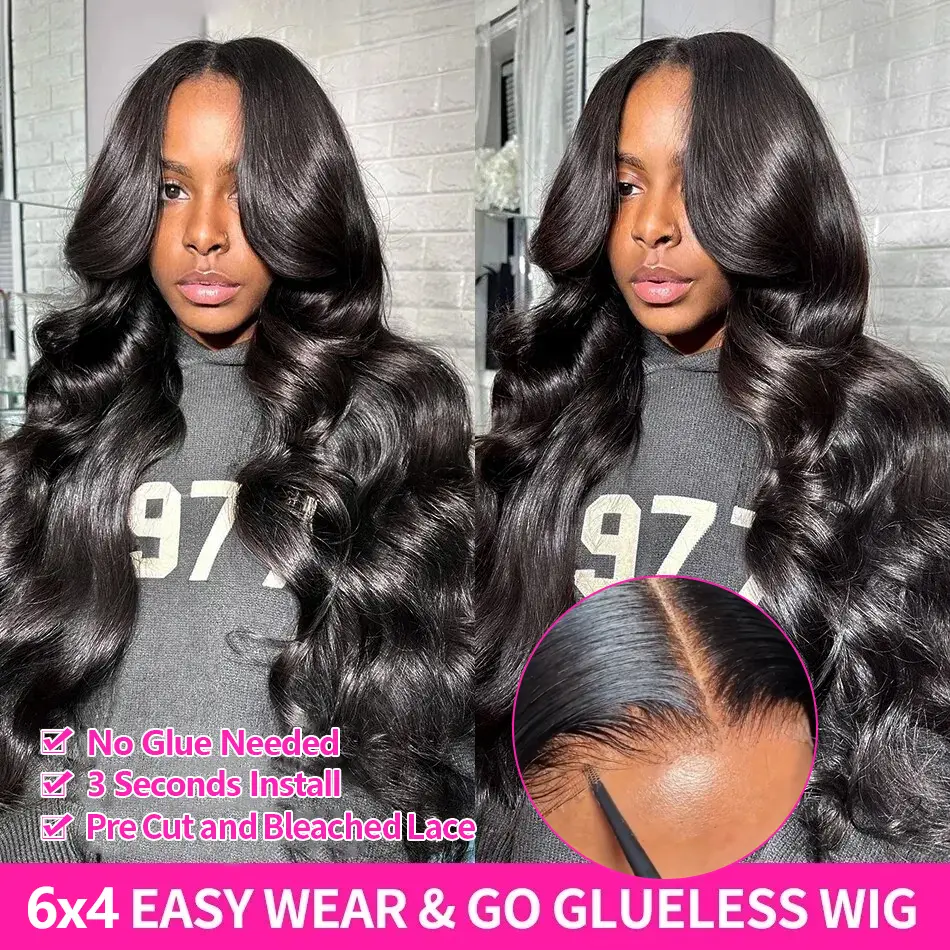 💕【New Upgrade 6x4 Glueless Wigs】: 3S to Wear Glueless Wigs, No Glue, No Gel, No Skills Needed, No Harm To Skin.