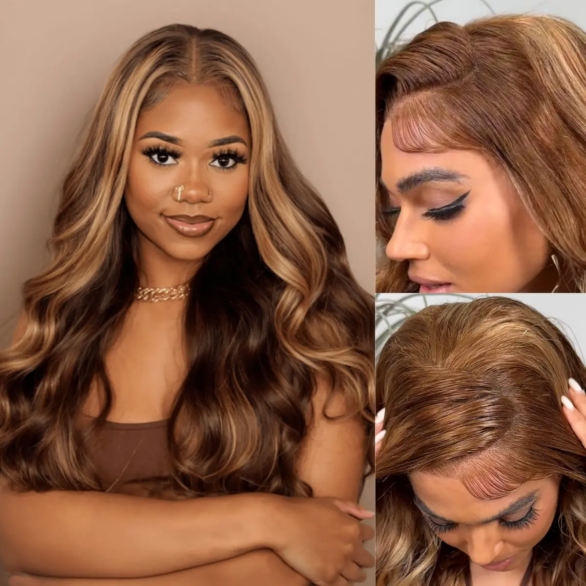 Love This wig I have it in 4 different Length. The color is perfect it comes pre-breached pre-plucked and curled. My pics are the wig straight out of the box. I love all my gifts especially the pink purse. UNice you are the best