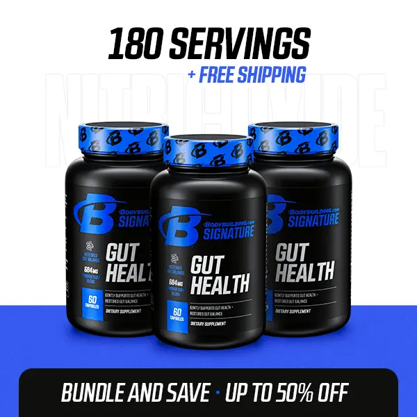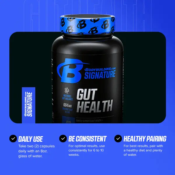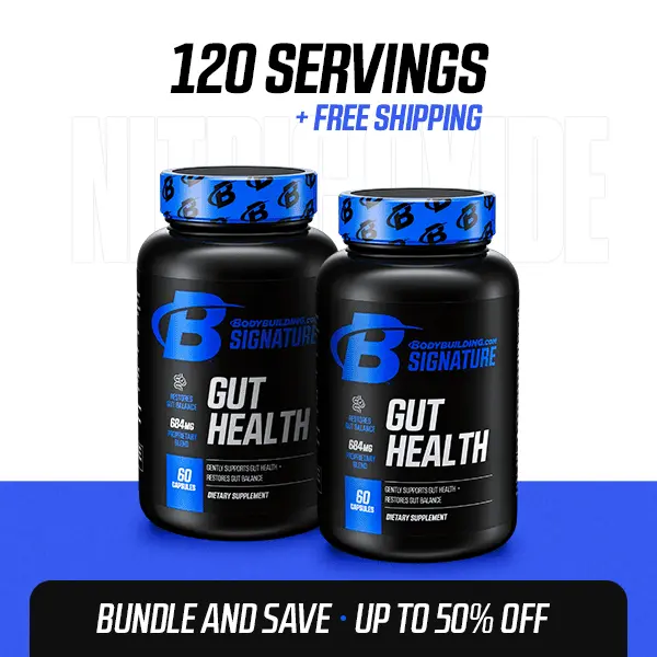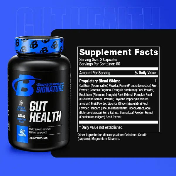 Bodybuilding.com Signature Gut Health 684mg Blend supports digestive balance and regularity. It restores gut comfort and promotes a healthier microbiome. Ideal for intense training, nutrition dialing, or daily resets. The 684mg proprietary blend ensures effective support.