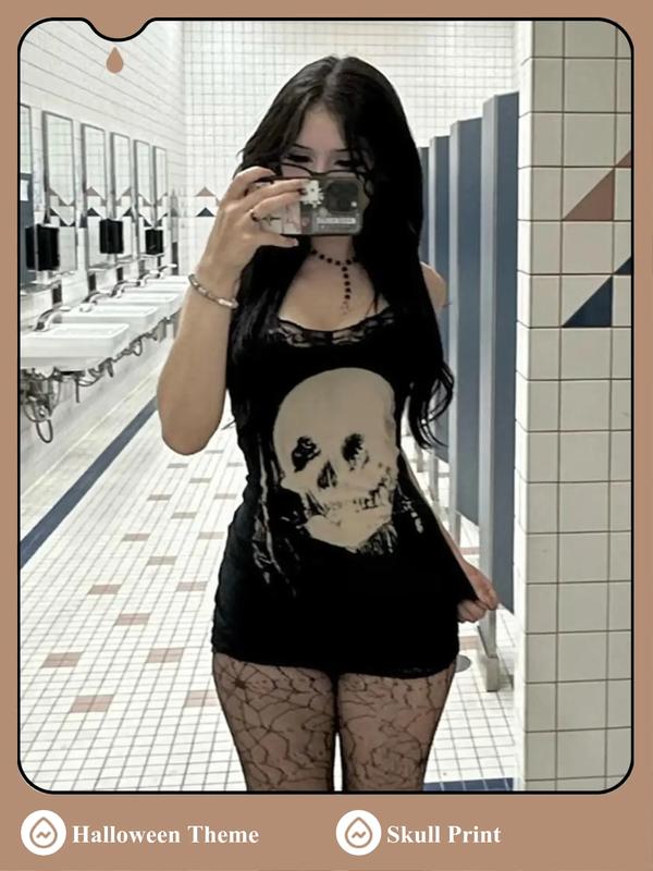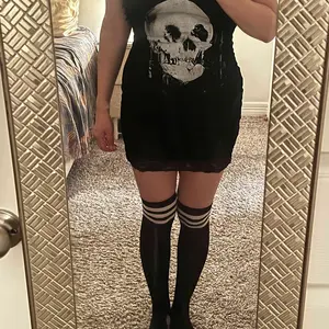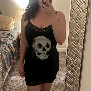 Cute dress, the skull is a bright white but I liked the length it was adjustable too. The xs wasn’t tight on me.