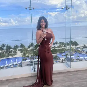 I LOOVEE this dress, it’s so elegant and she is longg. Not see through at all, fits like a gem. The scrunch near the lower back WITH the open back is gorgeous. I love the fact you can wear it in two styles. I love her, you need her 🥰 I’m 5’6, 140 pounds and I got a size small.