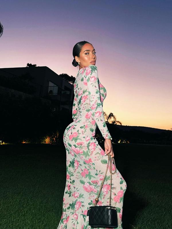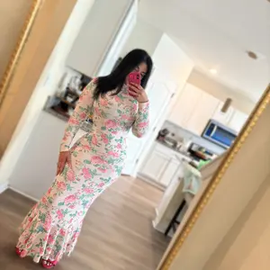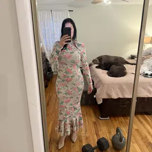This dress is stunning! It hugs your body in all the right places and feels comfortable with beautiful stretch. The floral print is elegant, and the ruffle hem adds such a flattering, feminine touch. It looks so expensive for the price. Thank you @juliasviralcloset