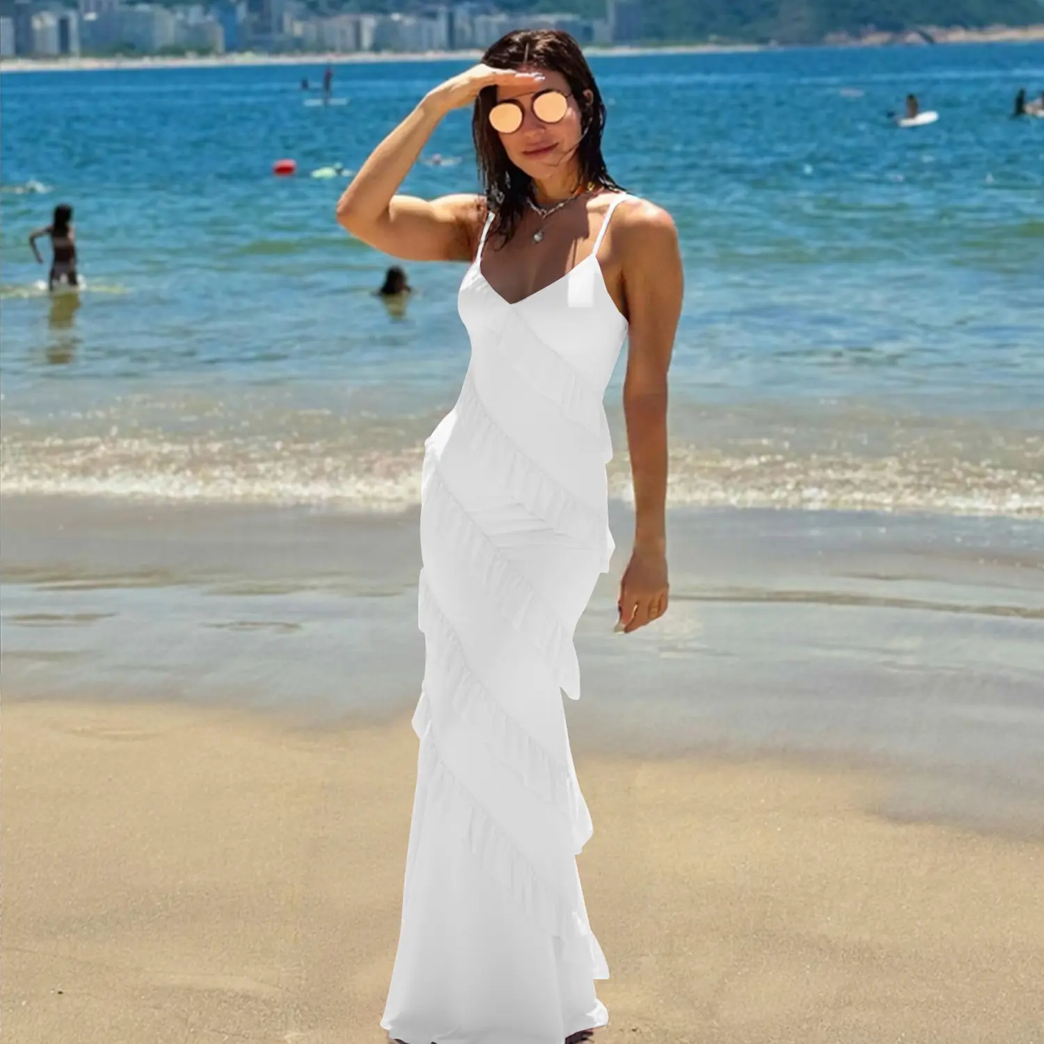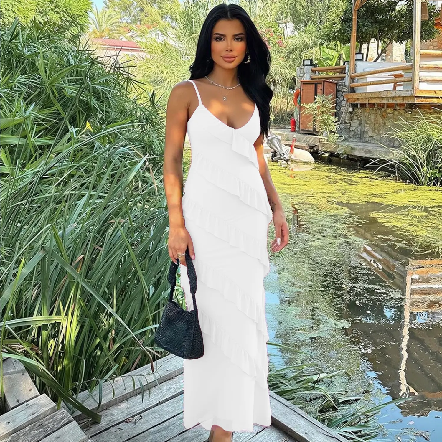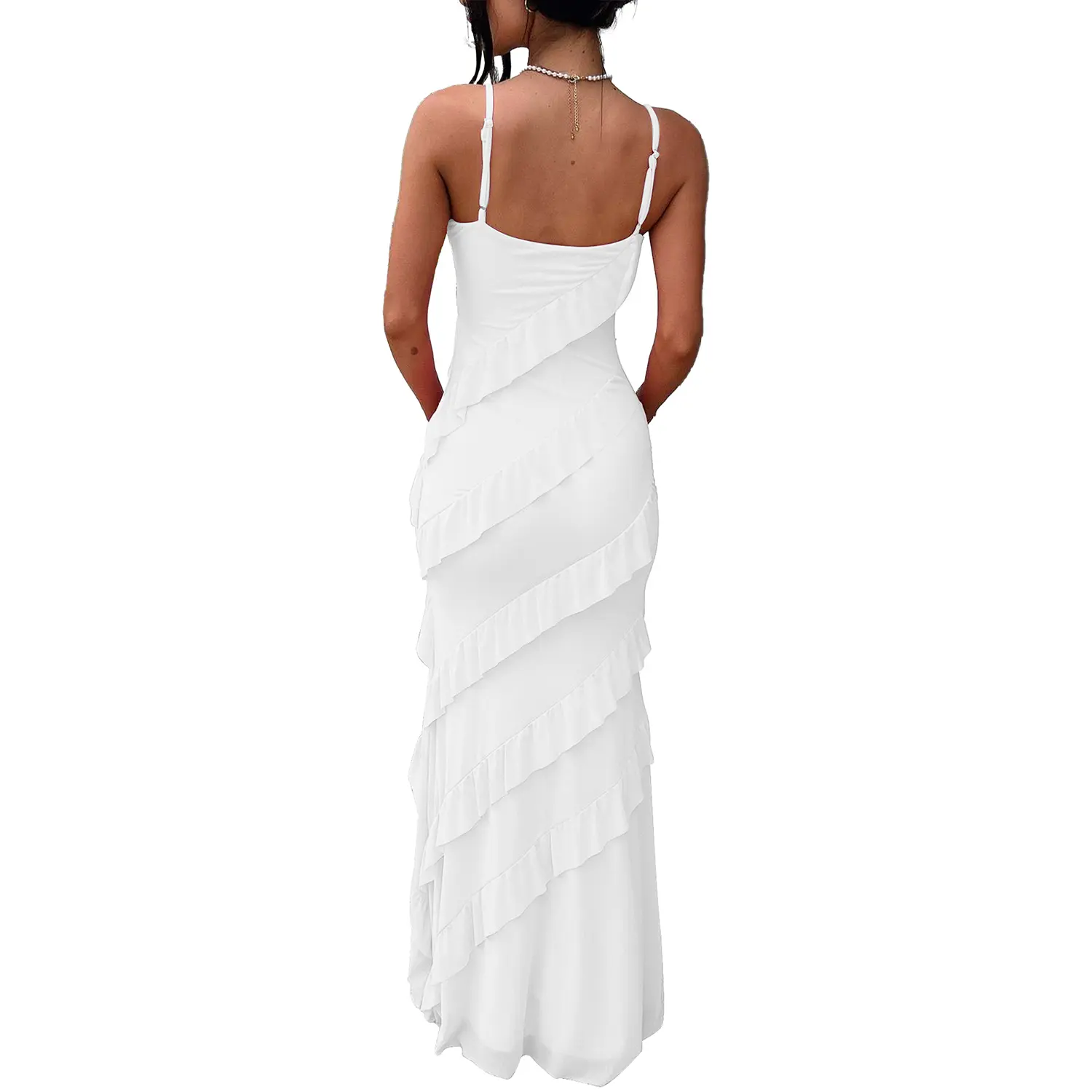 ·Trend-Forward Design: Featuring delicate cascading ruffles, adjustable spaghetti straps, and a chic backless cut to showcase your feminine charm.