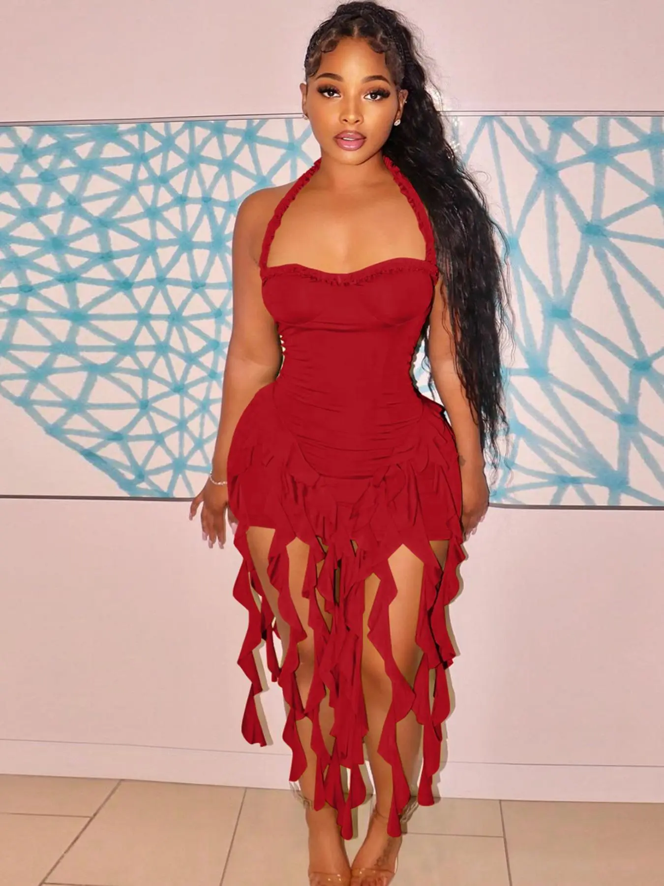 I really like the color. It’s not cheap quality and it’s also not expensive quality address. It’s definitely an interesting style. Something to get used to. Not everybody is going to love it. Very stretchy material. you can see the outline of your nips and fat rolls