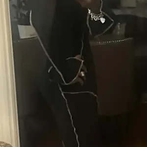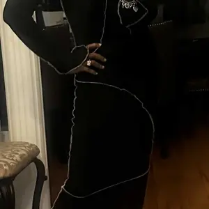 It’s really fitted, medium amount of stretch. Wish I got an XL I wanted it to be longer and touch the tops of my feet and/or ankle. But it rests just above my ankles/midcalf. The sleeves also don’t have much stretch so size up 1-2 sizes depending on your desired look. (I was taking unserious pics)