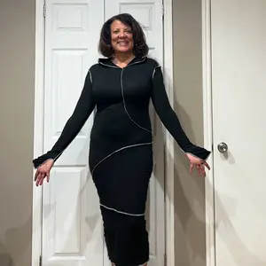 These dresses are such a vibe. You wanna dress it up wear boots. Wanna dress down put on some cute tennis shoes. Its stretchy and it shows off your curves. I'm 5'8 and a size 16 so I ordered the 2xl that fits like a size 14. Its so cute.