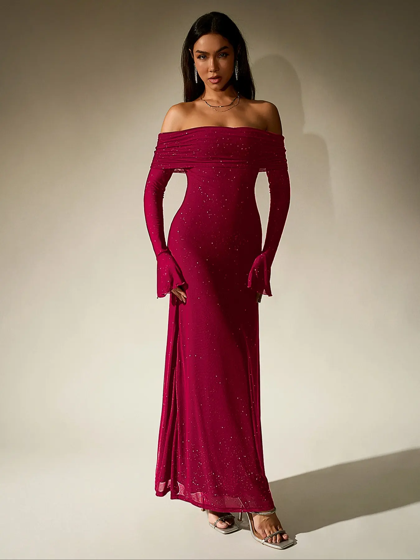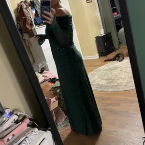 Love the dress, the off the shoulder part that covers the chest is stitched by the sides of the arms so when your arms go up that part comes up too, so kinda annoying adjusting each time but overall I like the dress and like that the sleeves go down to the hands. Dress also forms to the body nicely