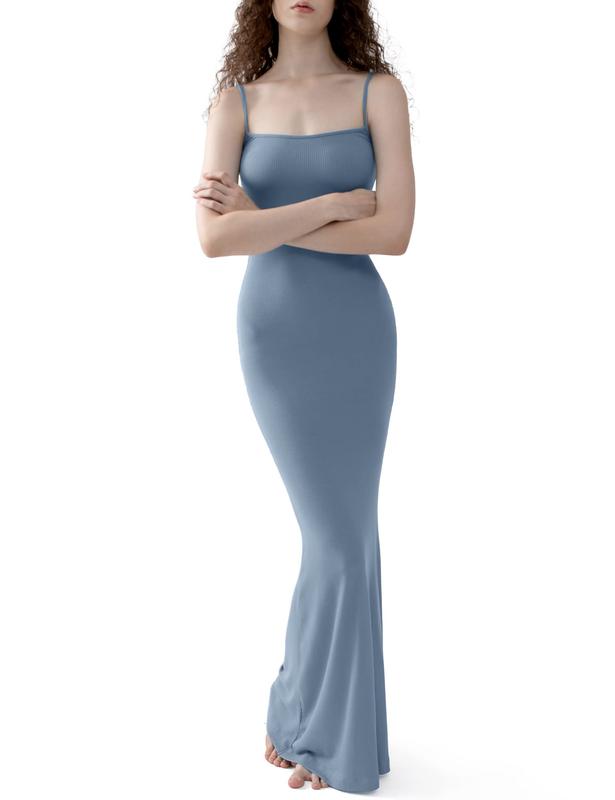 ·This super soft, drapey slip maxi dress featured a stunning ribbed knit fabrication with a flattering straight neckline and partially adjustable spaghetti straps, offering a snatched, smoothed look.