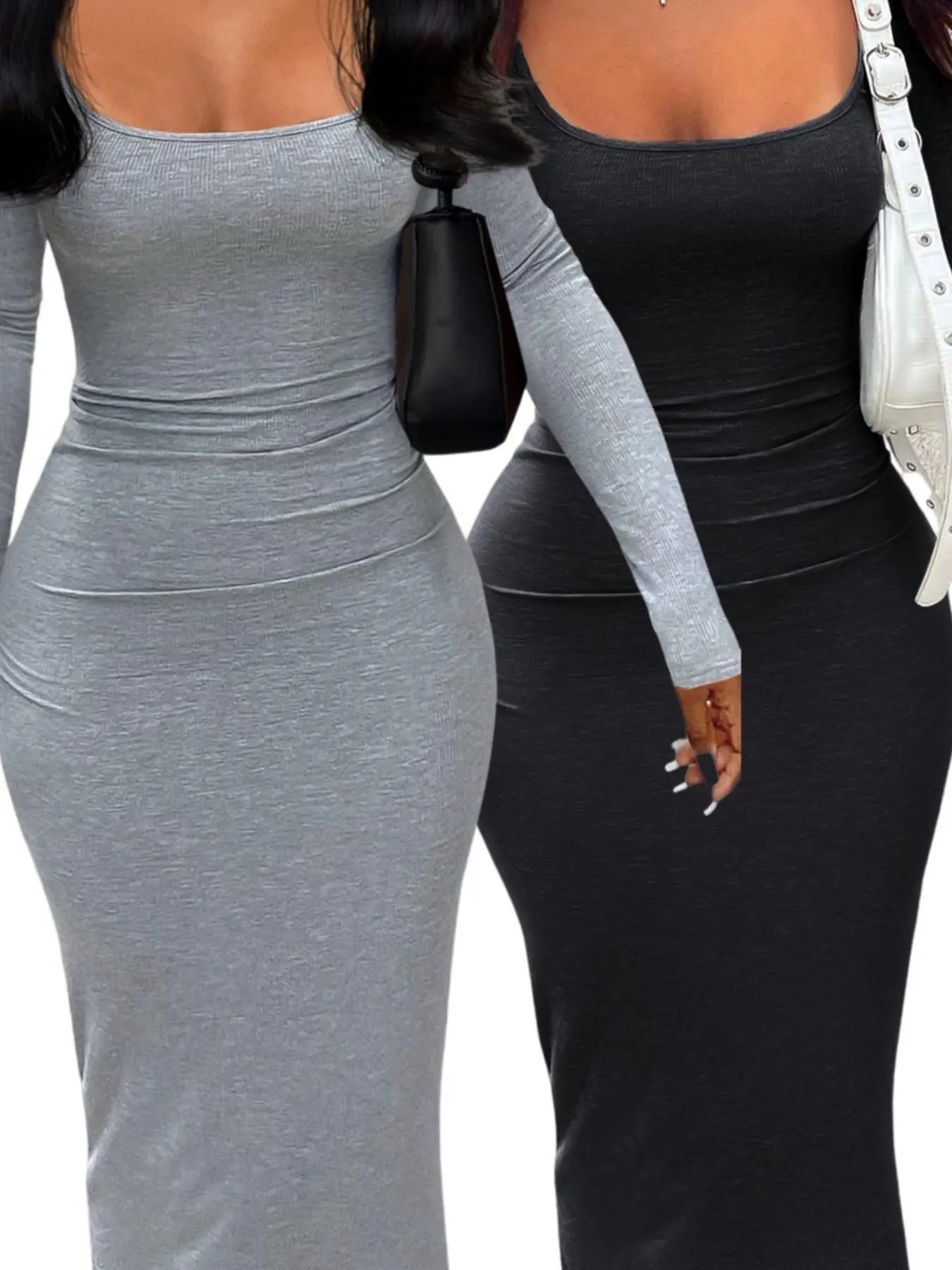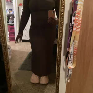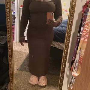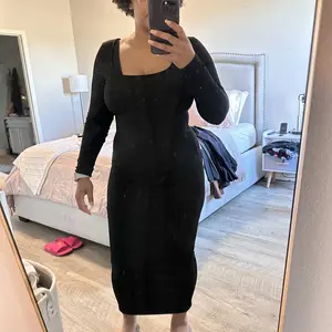 I like this dress a lottt, it’s like that ribbed material which is nice, and I’m 5’1 goes to right above my feet