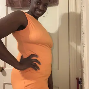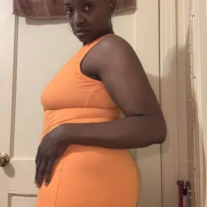 I love this orange bodycon dress! It hugs my curves perfectly and the vibrant color makes such a bold statement. Comfortable, flattering, and confidence-boosting, definitely one of my new favorites!