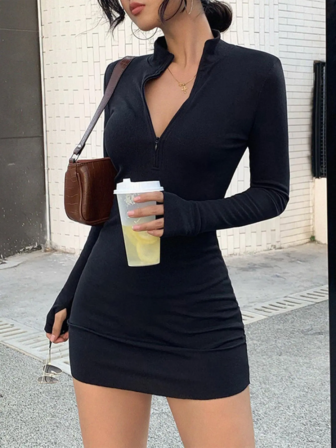 Super cute and comfy. The material is thick and warm. Definitely short, but the dress hugs your body and it’s good for a nice outing. I probably should have sized up cause the arms are a little tight. Overall I really like it.