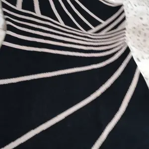 Elegante vestido de Corte asimetrico Pedí talla M y tengo q cambiar por Small. La tela es gruesa y muy elastizada. No se marca nada . Me encantó.