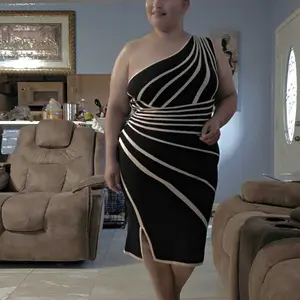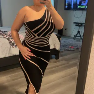 I feel like an star when I put this on. Everyone that I have been around loved the dress. It is a confidence booster. The fabric is sweater like material and has some give to it. It has a slight split at the knee to give it that wow factor. The catch all is the one shoulder out. Love it. Yes.