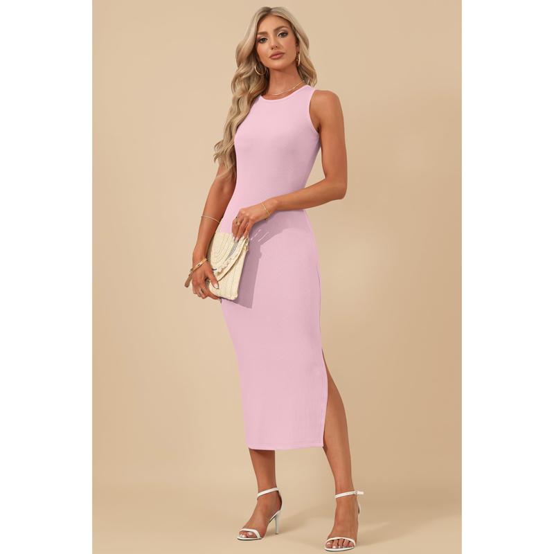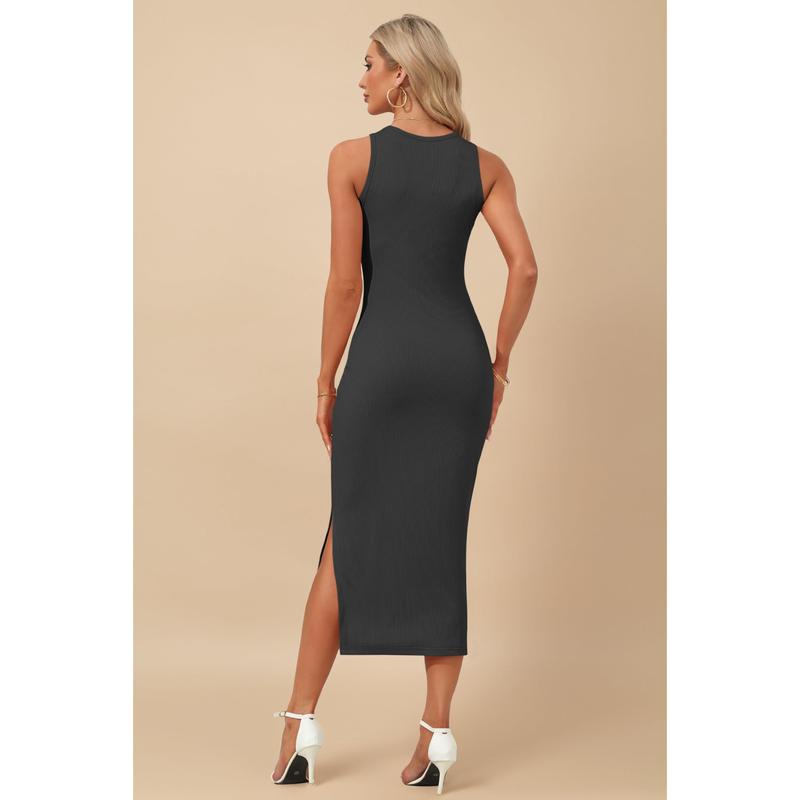Features: stretchy, classic solid color, sleeveless, side split design. Pencil ribbed knit dresses perfectly fitted to enhance your curves