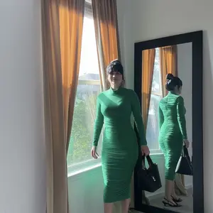 This dress is SUPER GORGEOUS. The color is ON POINT and true to what you know the color green tinge. Delivery speed: I have to say, I ordered on Oct 25 ot was at my door Oct 27. THAT was the QUICKEST delivery I have EVER had on TikTok